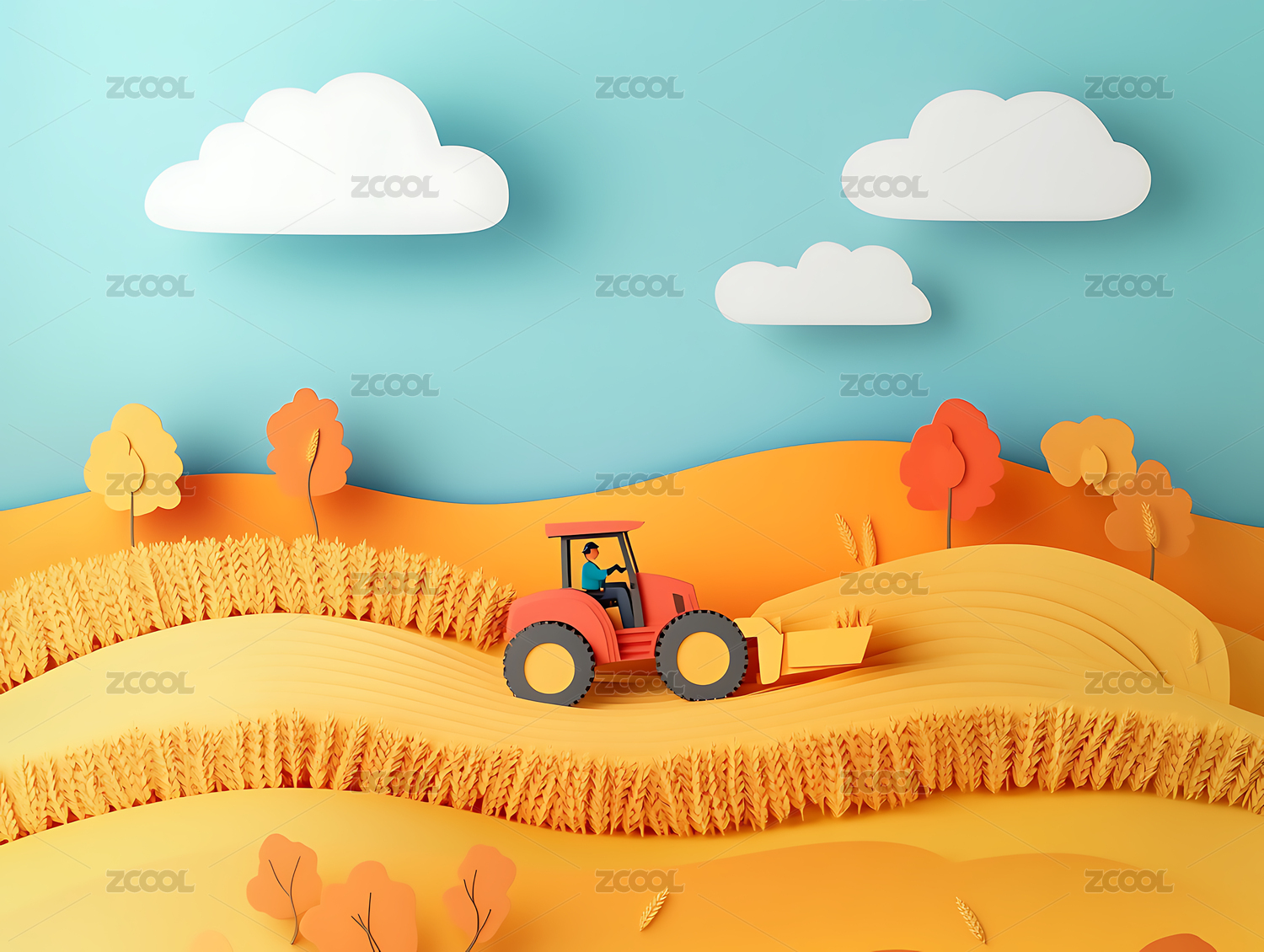 秋天,秋季,丰收,农业,耕耘,粮食,剪纸风格,立体风格,极简风格,金色