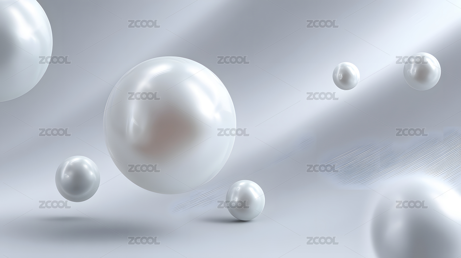 蓝白相间的抽象景观的渲染其中包含多个球体
