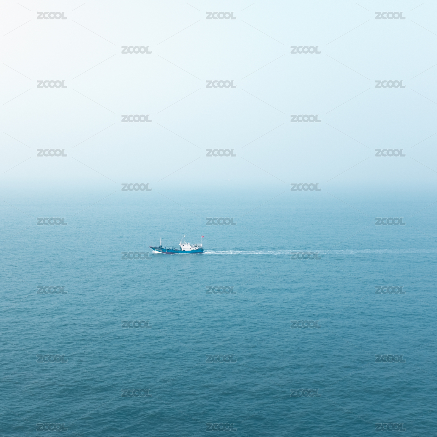 广阔海面孤舟航行