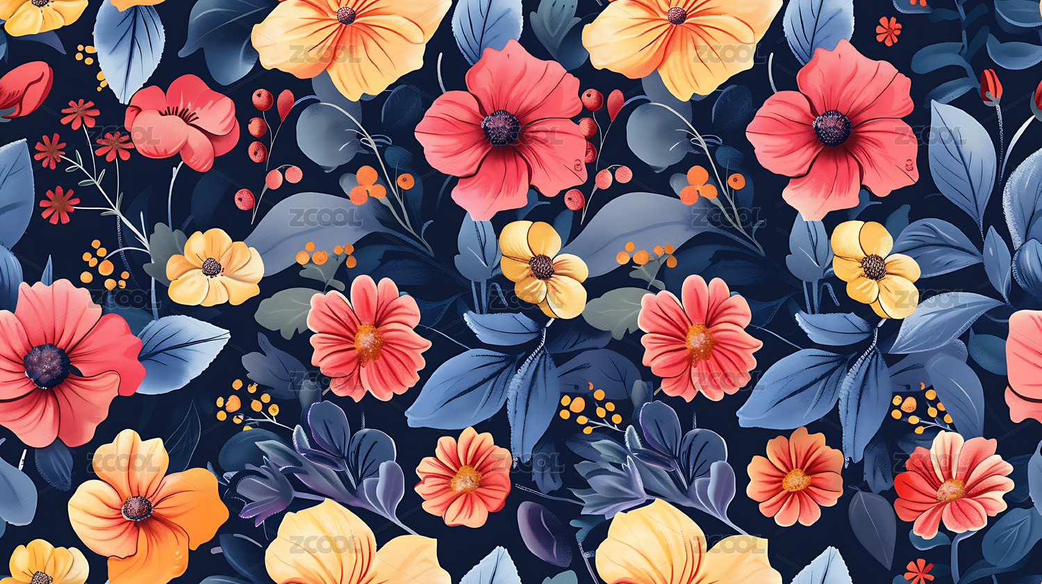 叶子,花簇,花瓣,花头,植物学,式样,壁纸,夏天,AI数字艺术