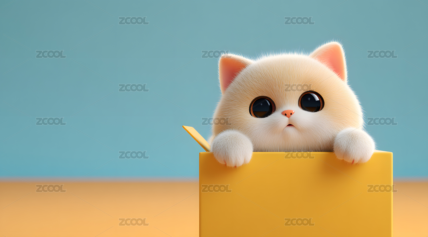 猫咪,可爱,萌宠,卡通,治愈,宠物,幸福,3D,渲染,插画