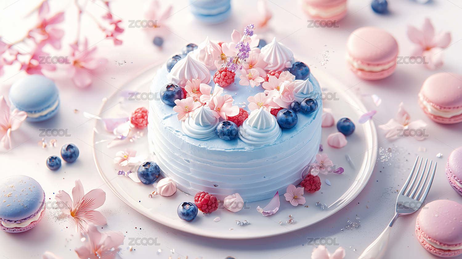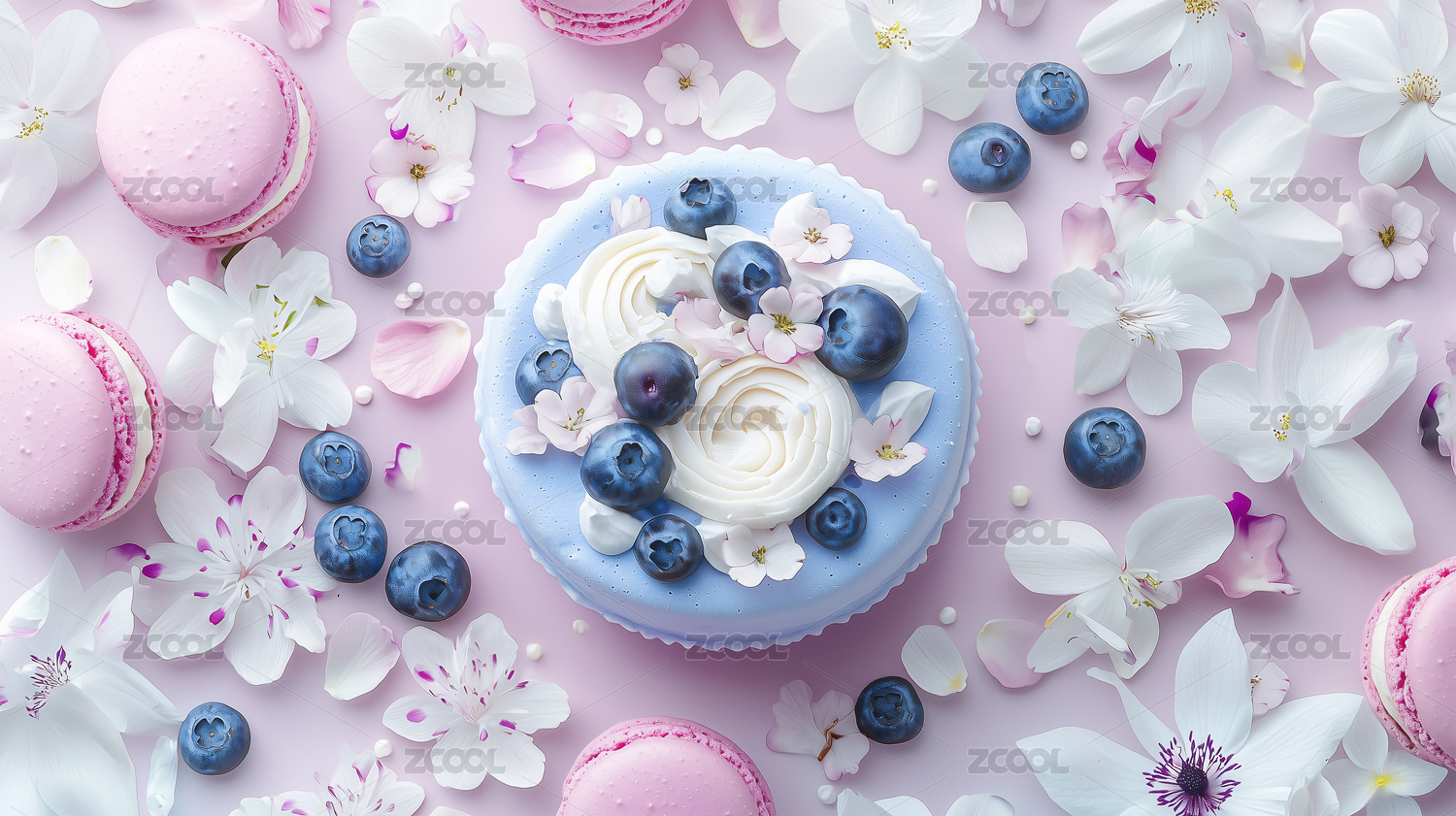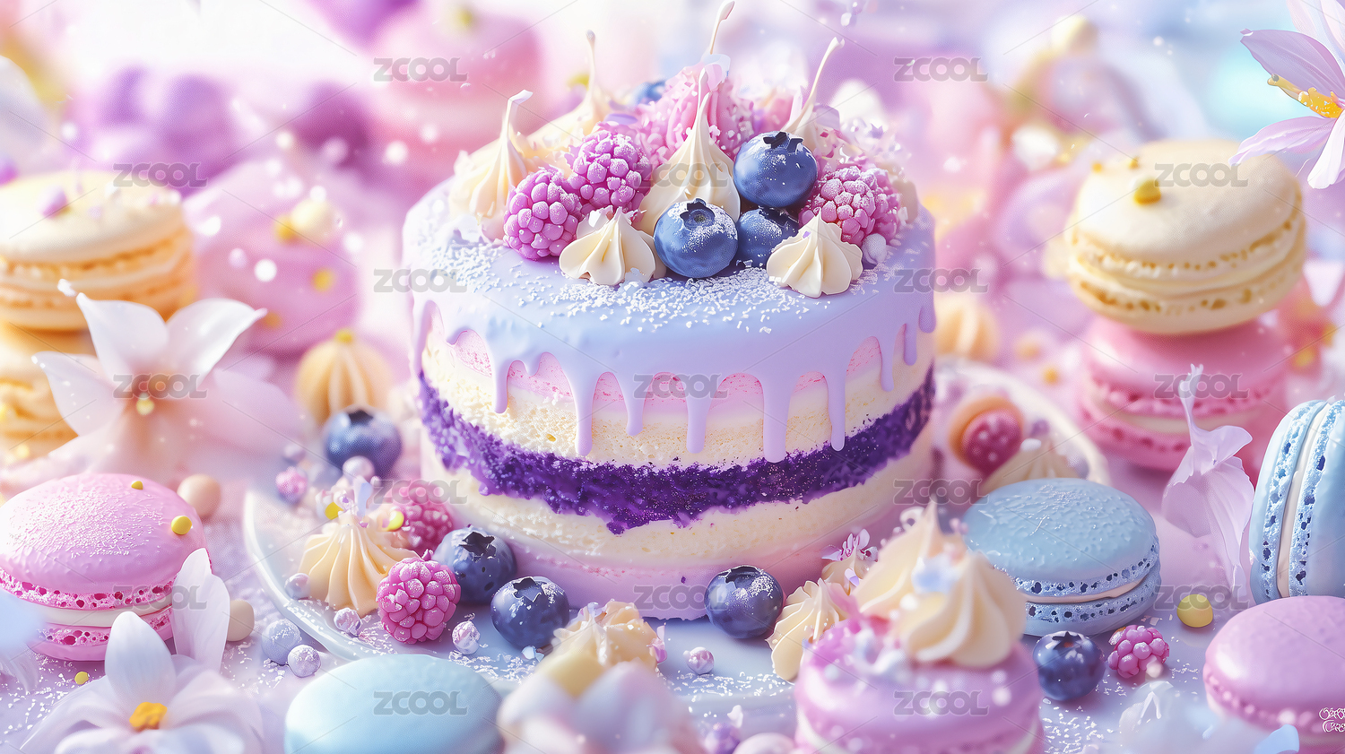 插画,马卡龙,奶油,美味,艺术,紫色,蛋糕,蓝莓,粉色,水彩