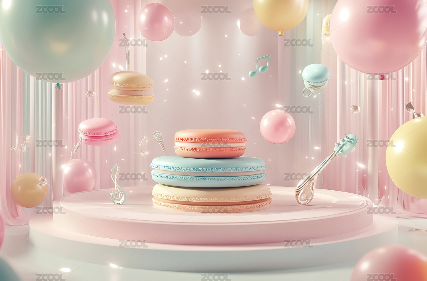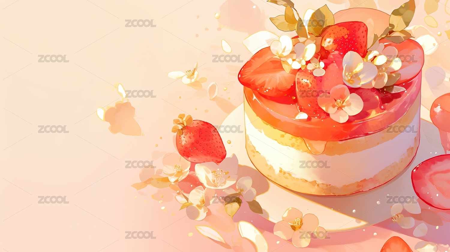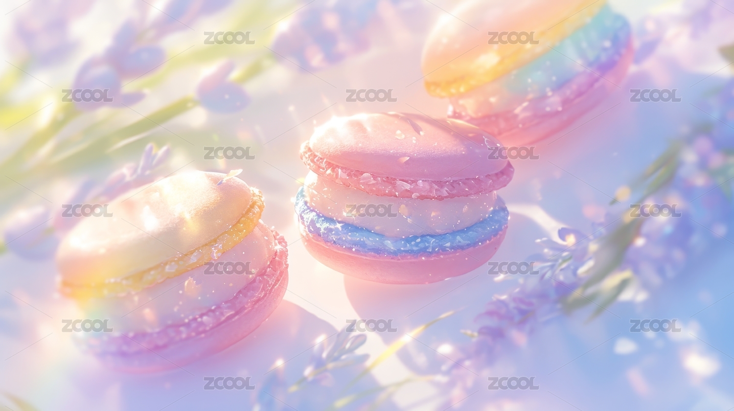 插画,马卡龙,奶油,美味,艺术,紫色,蛋糕,蓝莓,粉色,水彩