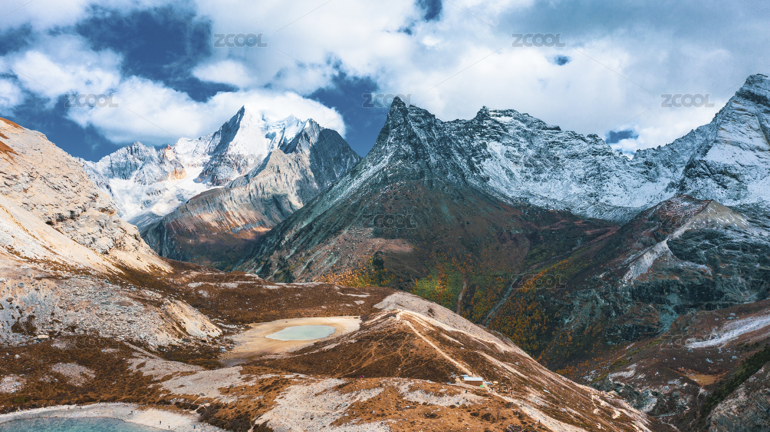 稻城亚丁夏诺多吉神山下的五色海