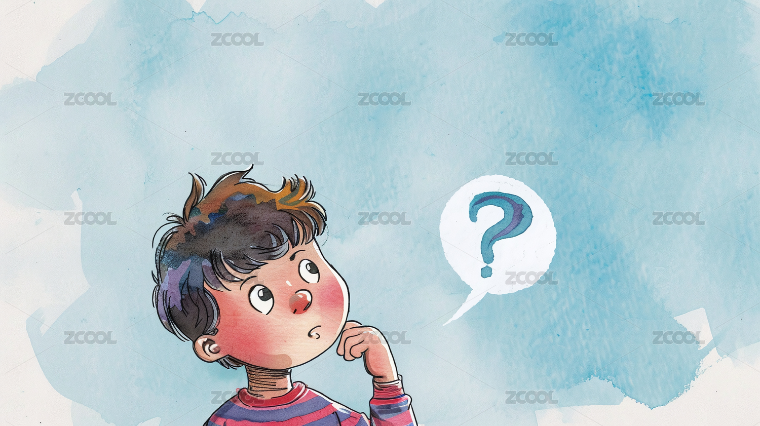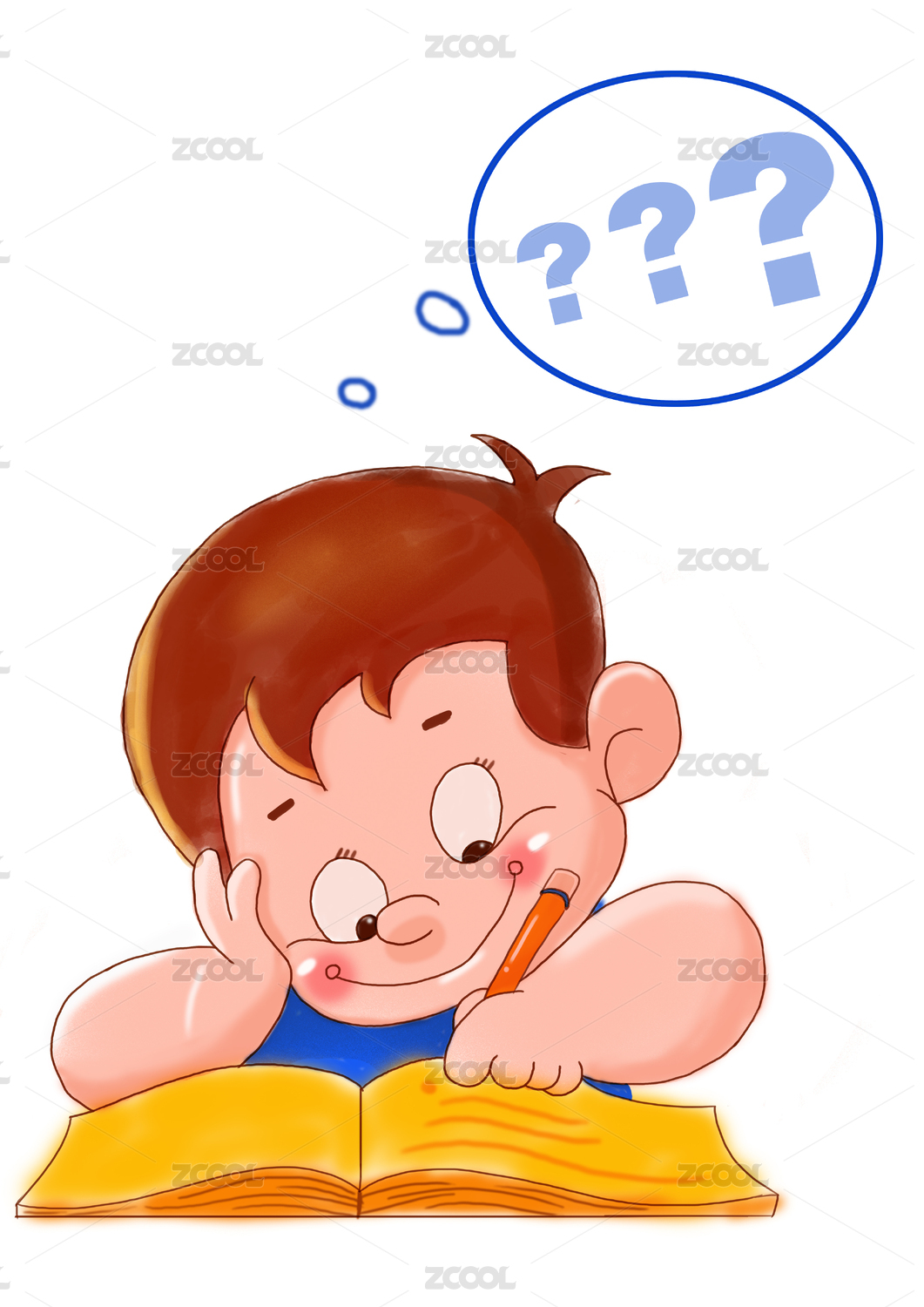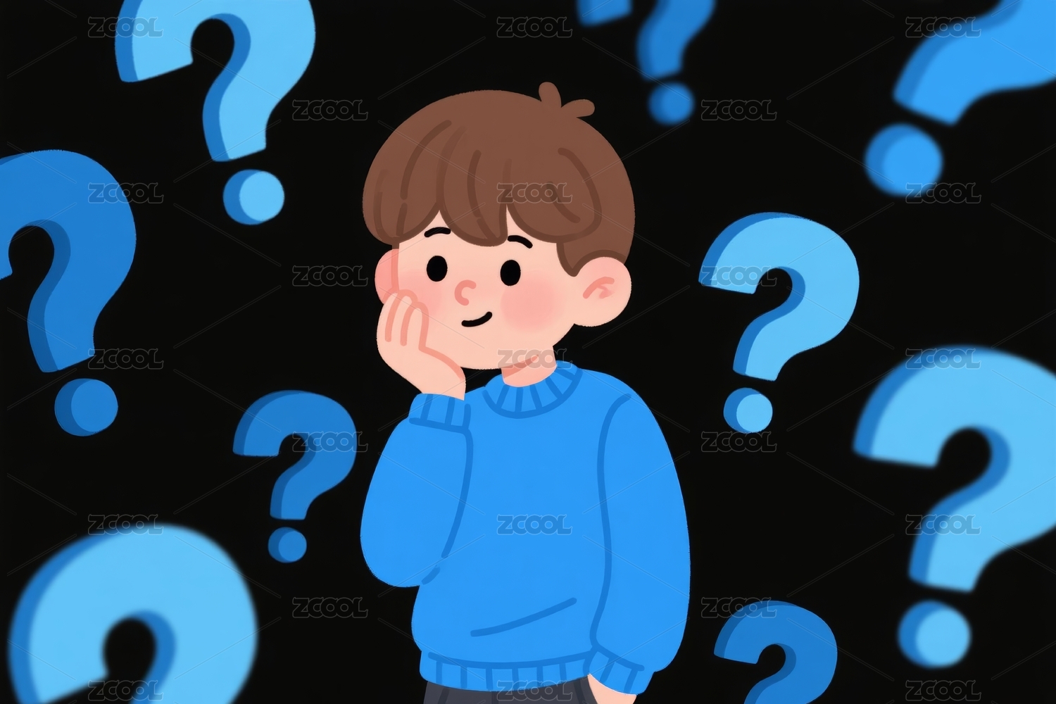 手绘,男孩,思考,背景,问号,疑问,学生,小学生,插画,卡通
