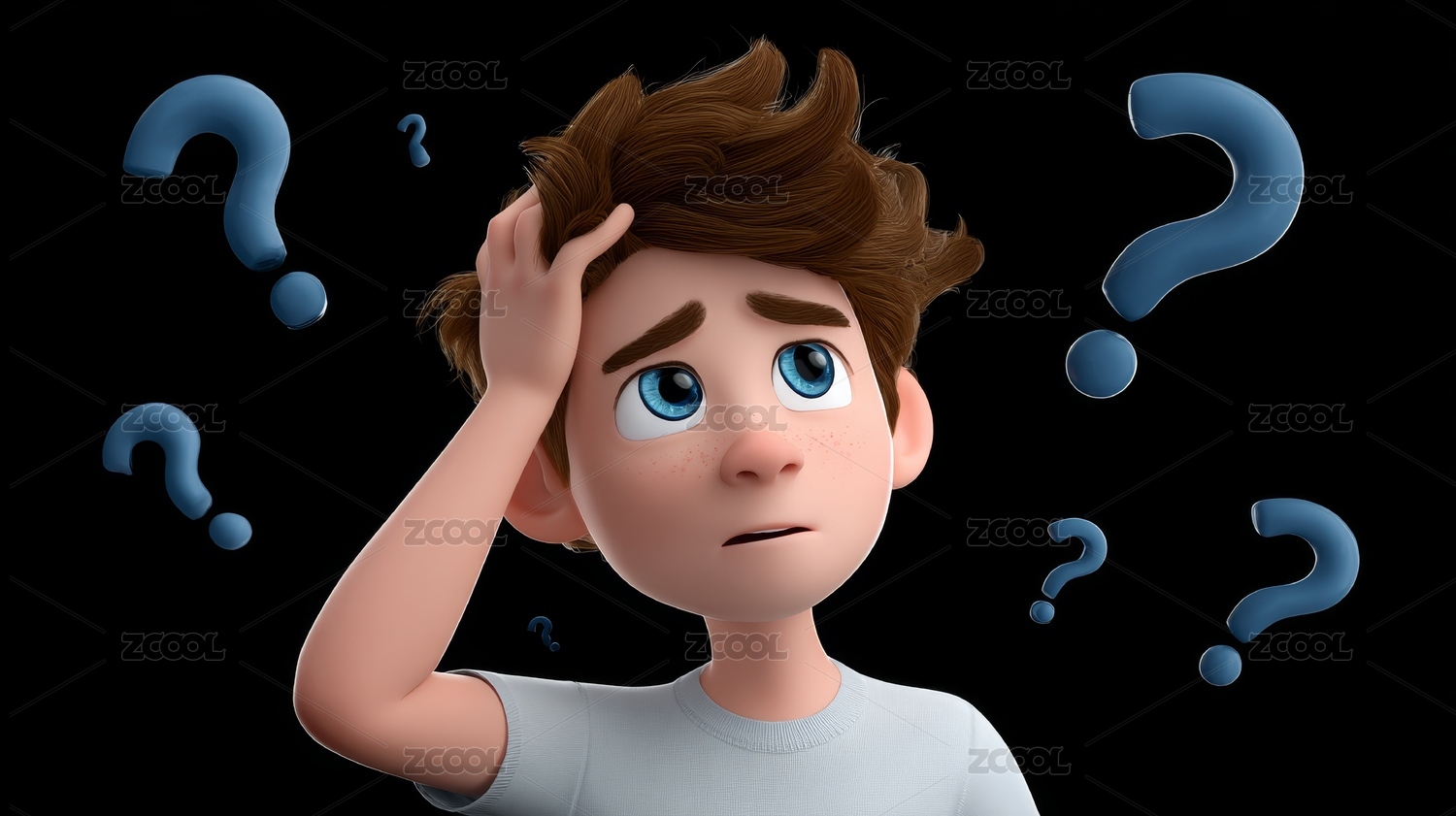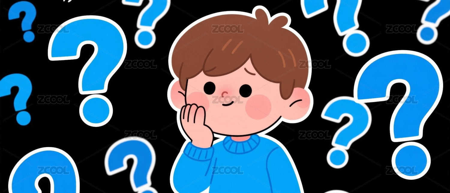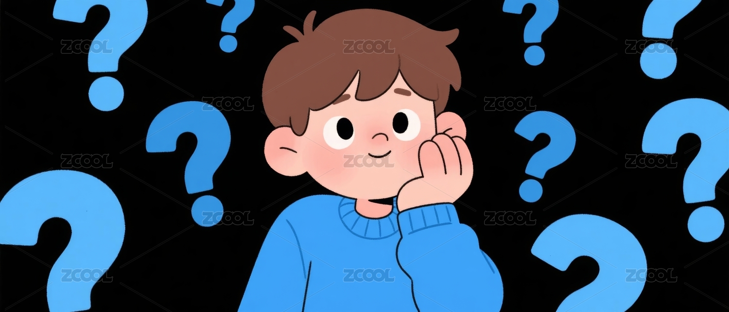 手绘,男孩,思考,背景,问号,疑问,学生,小学生,插画,卡通