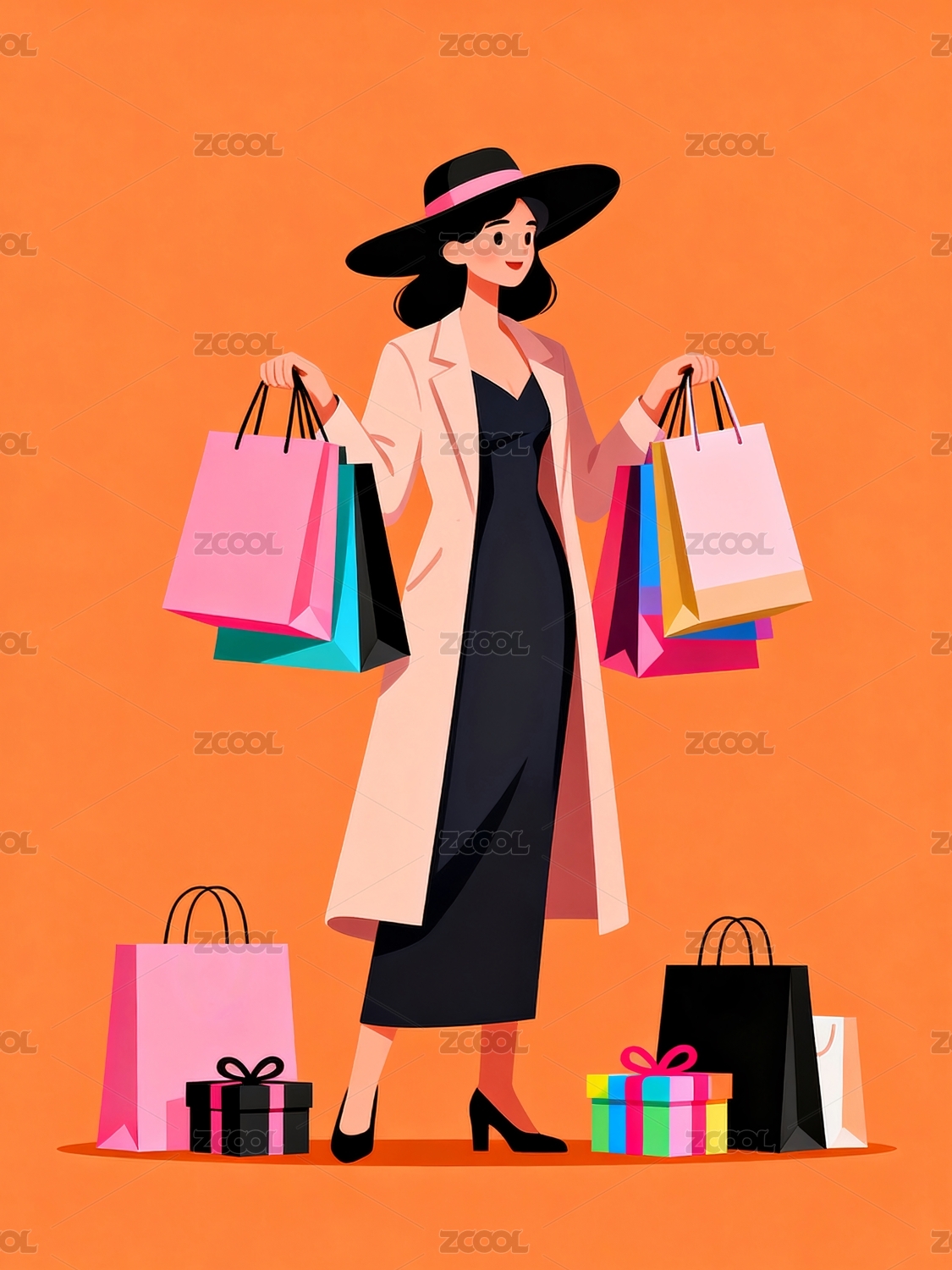 新年购物节卡通女人主题元素