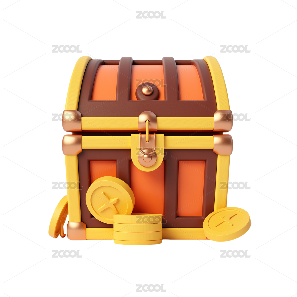 3D,插画,元素,卡通,粘土,设计,宝箱,箱子,财富,图标