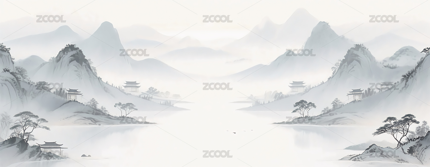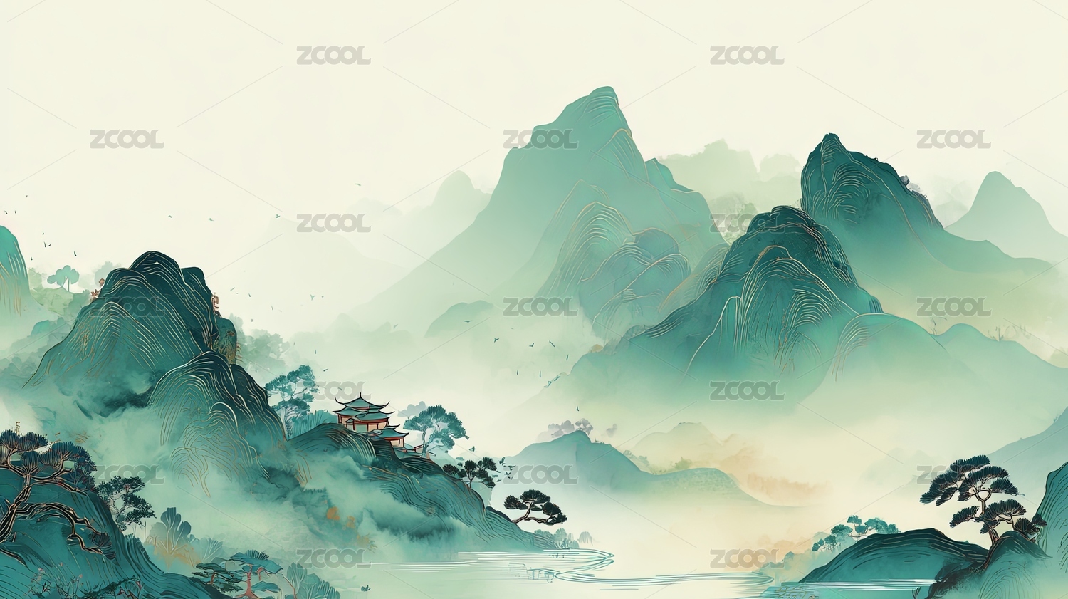 国风,山水,青花瓷,蓝色,艺术,插画,水墨,国画,自然,风景