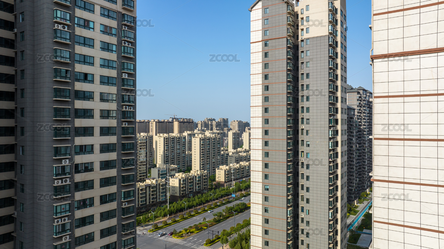 城市社区小区楼房居民楼经济房产楼盘地产航