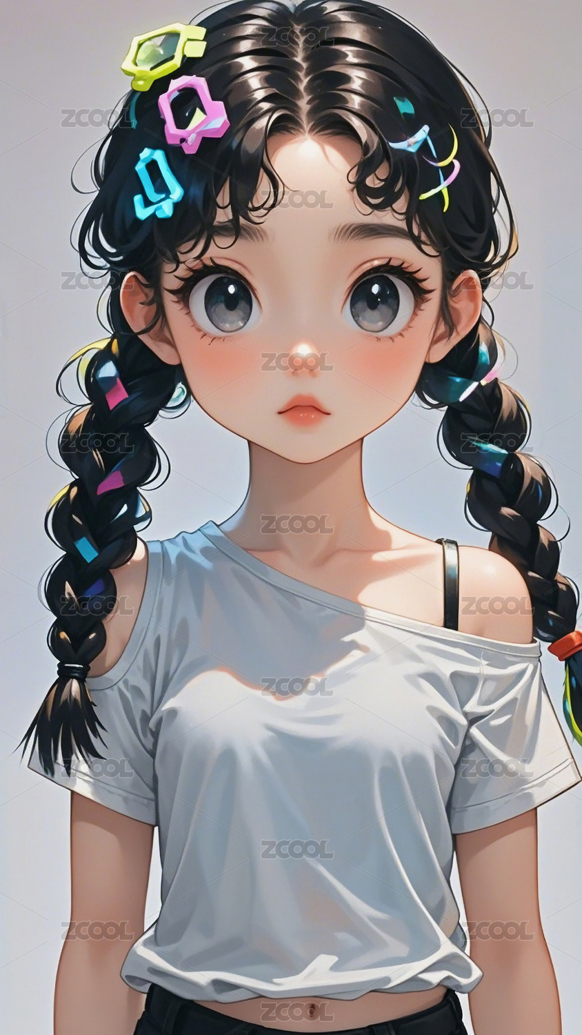 脸上有腮红戴贝雷帽的麻花辫女孩