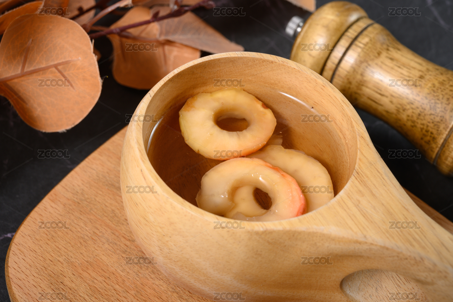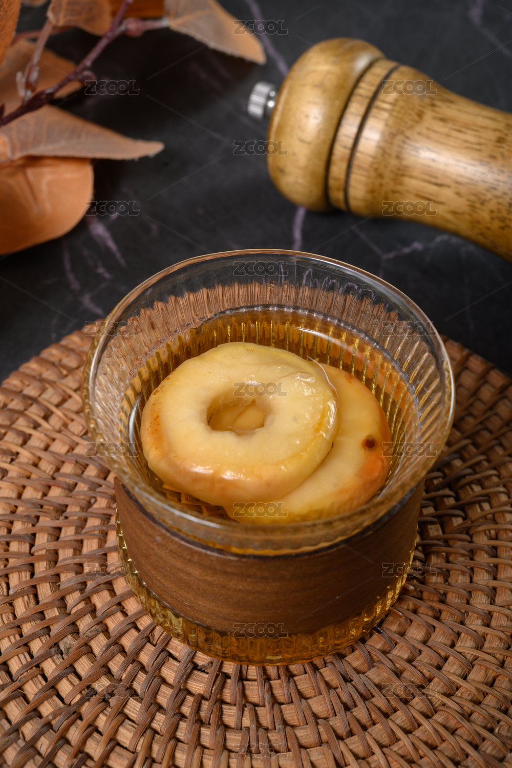 桌面上的杯子里的美味可口的沙果茶