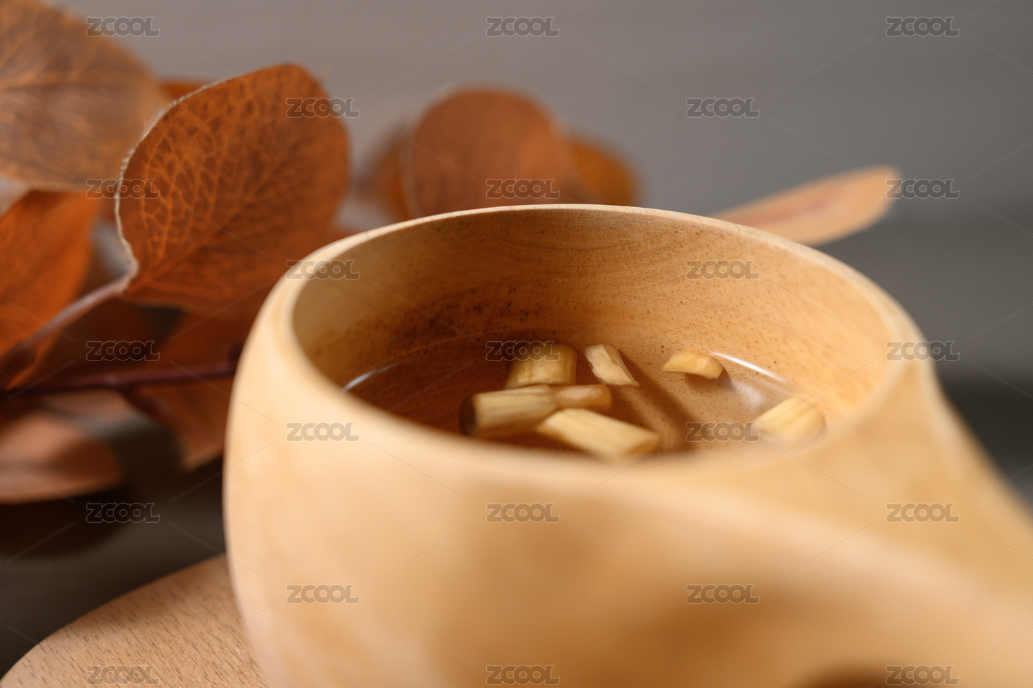 桌面上的杯子里的的甘甜可口的西洋参茶