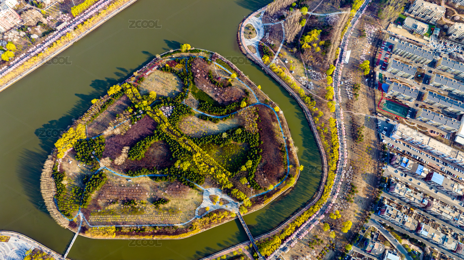 中国广东省珠海市斗门区井岸镇霞山公园航拍