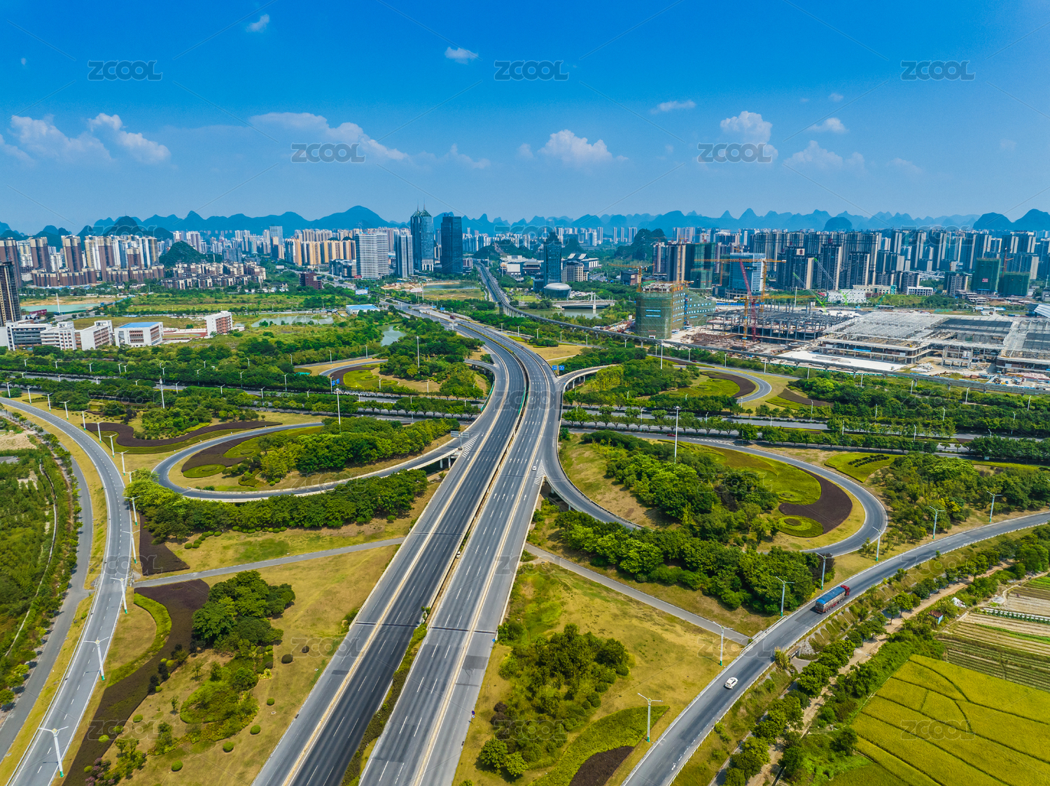 航拍,桂林新区,世纪大道立交桥,交通,车流,城市