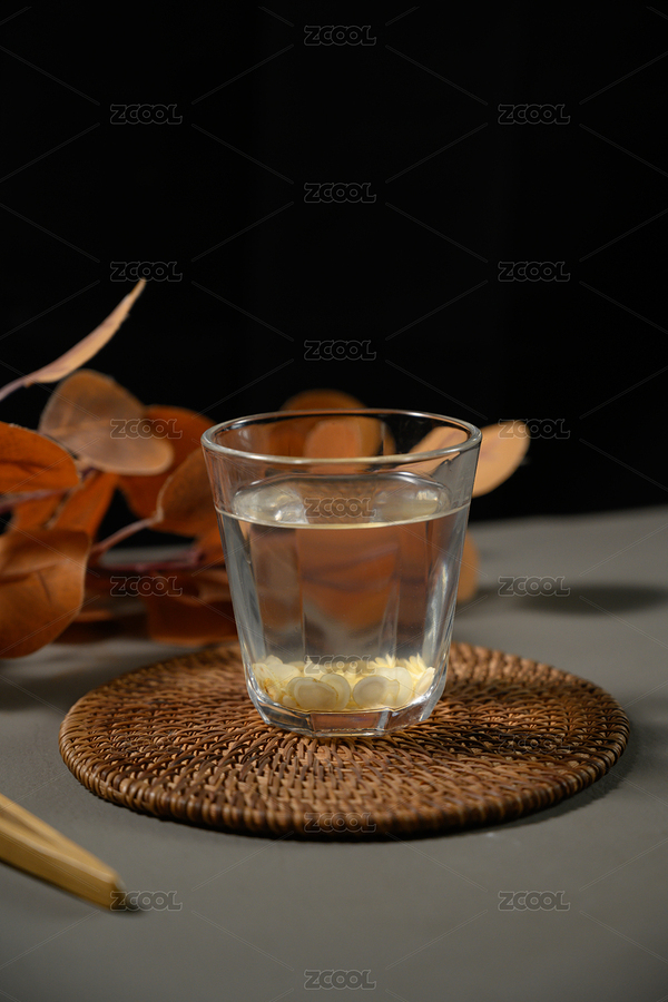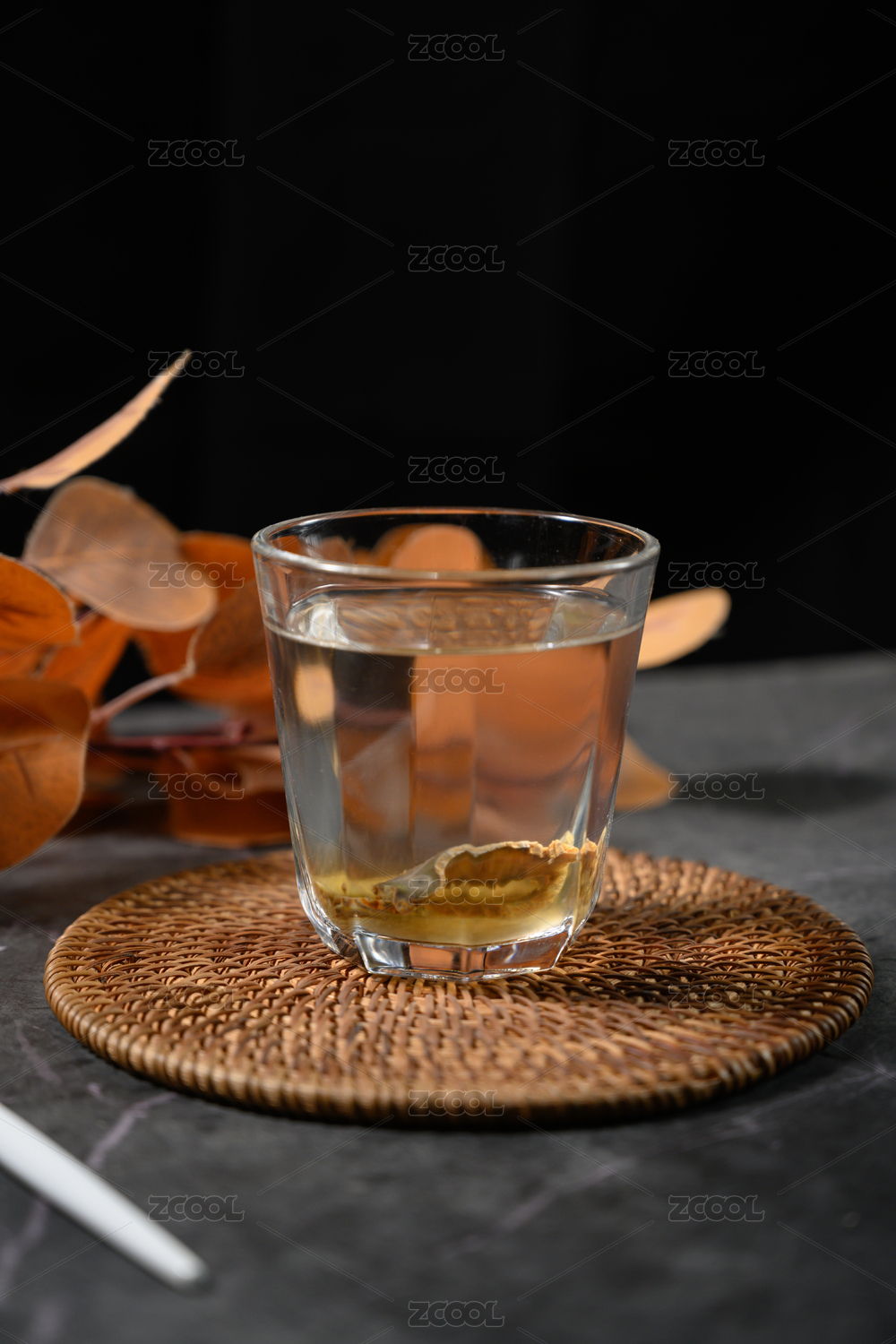 桌面上的杯子里的的甘甜可口的西洋参茶