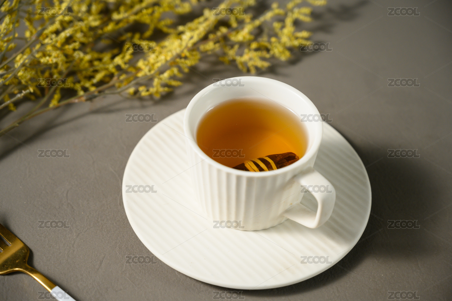 桌面上的杯子里的甘甜可口的五花茶