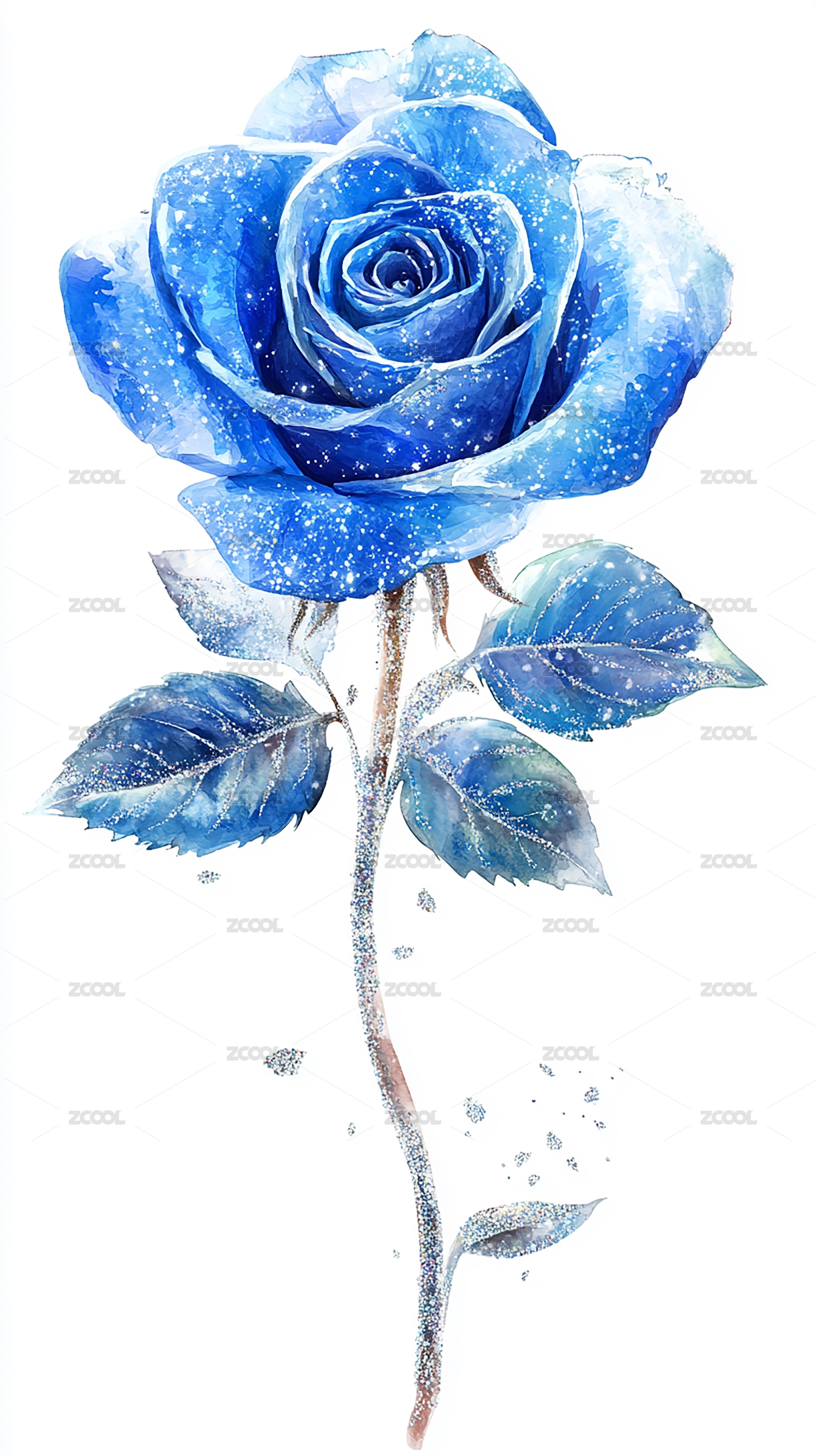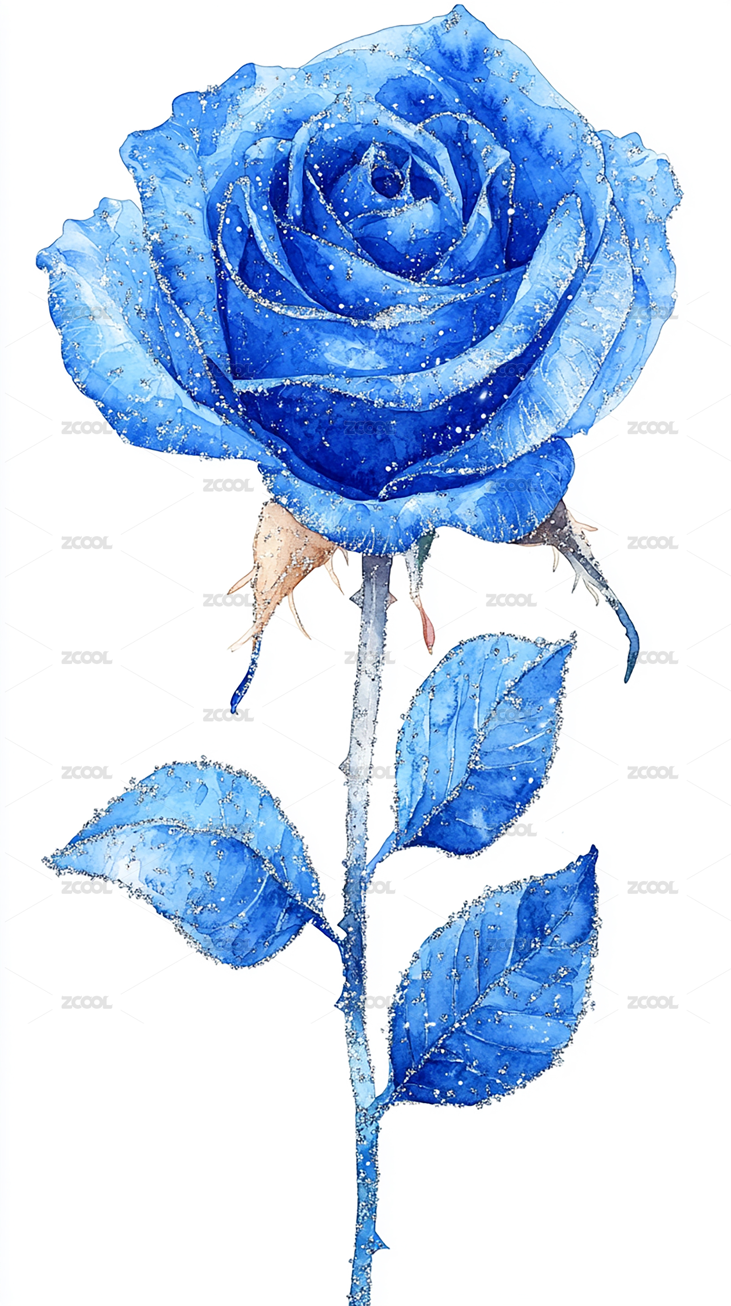 淡墨手绘水彩蓝玫瑰,花卉素材插图