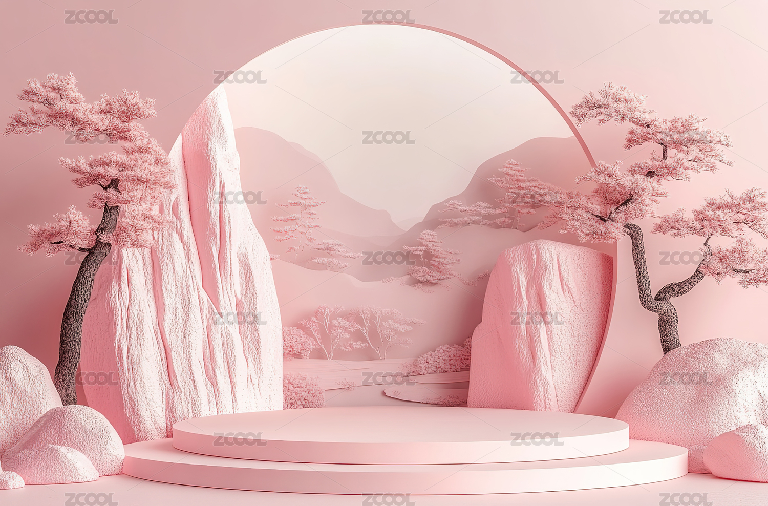 粉色梦幻场景,圆窗蝴蝶飞舞