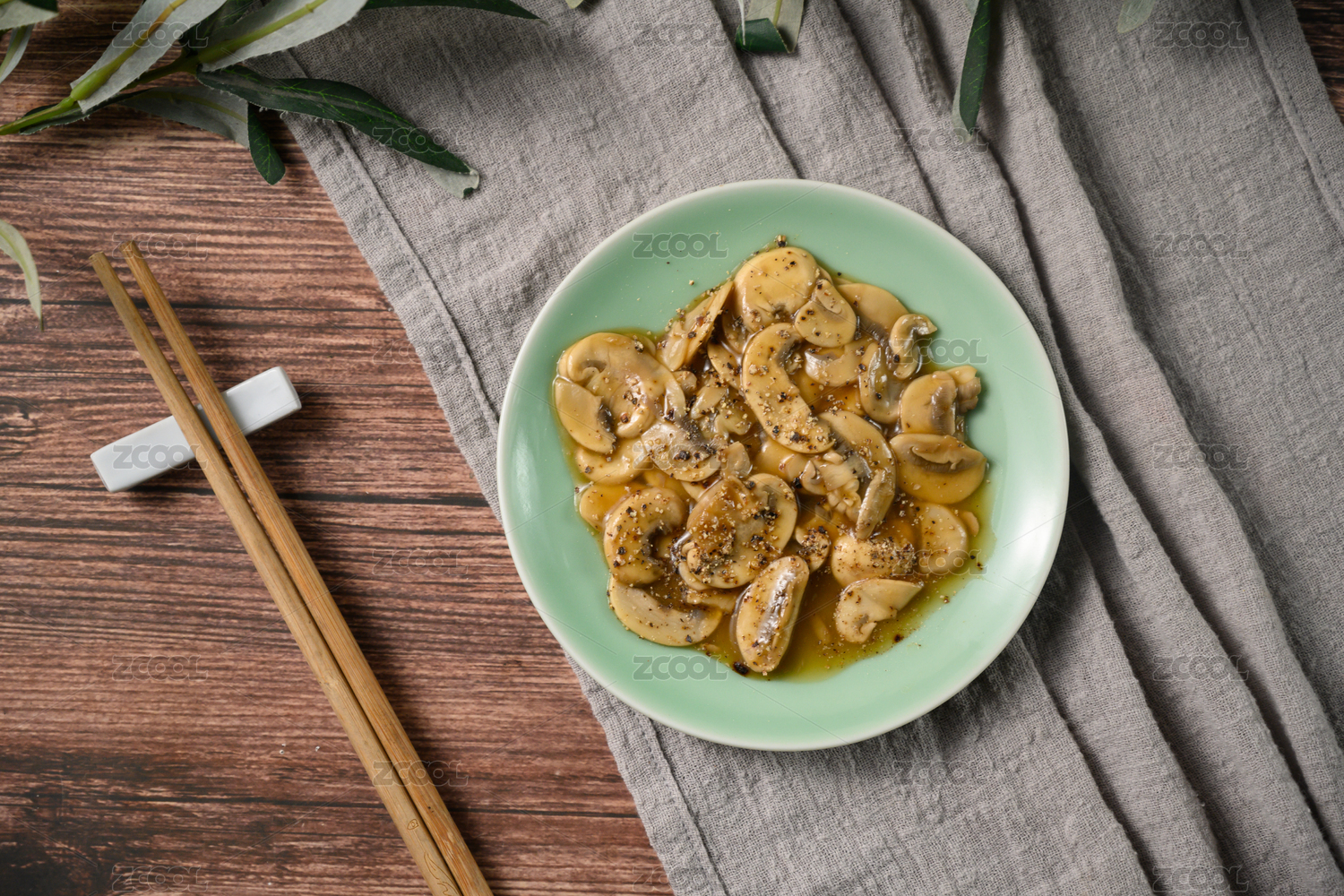 桌面上的盘子里的美味可口的黑椒蘑菇