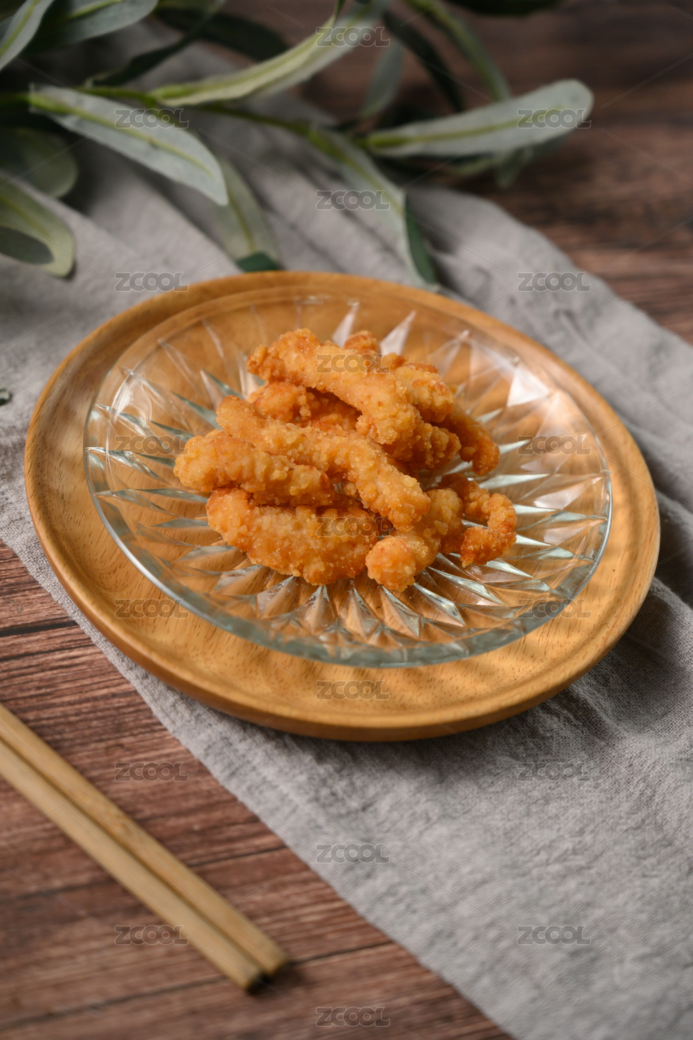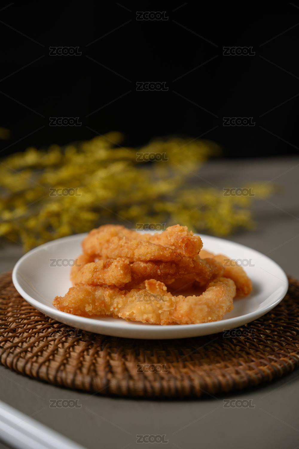 桌面上的盘子里的美味可口的小酥肉