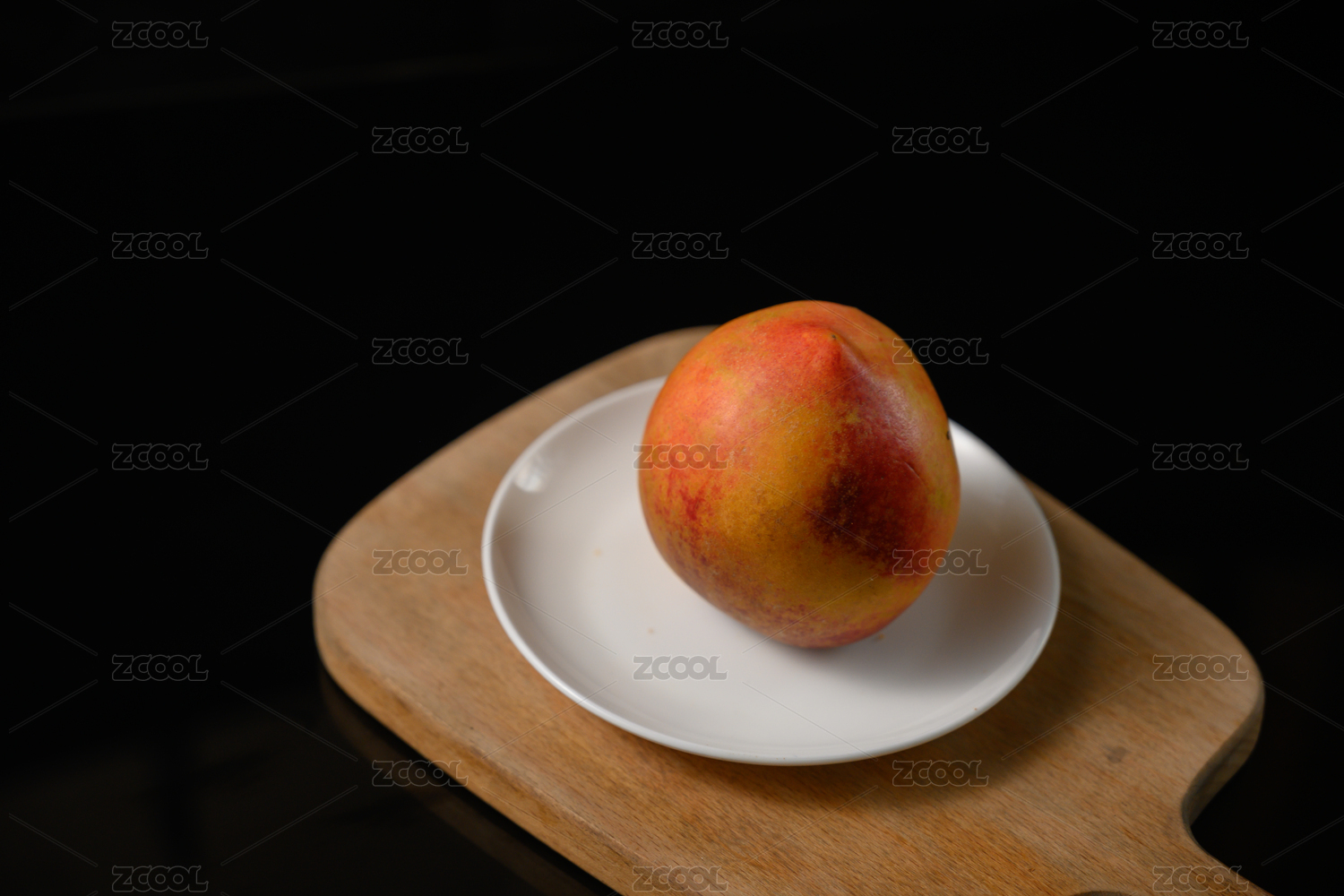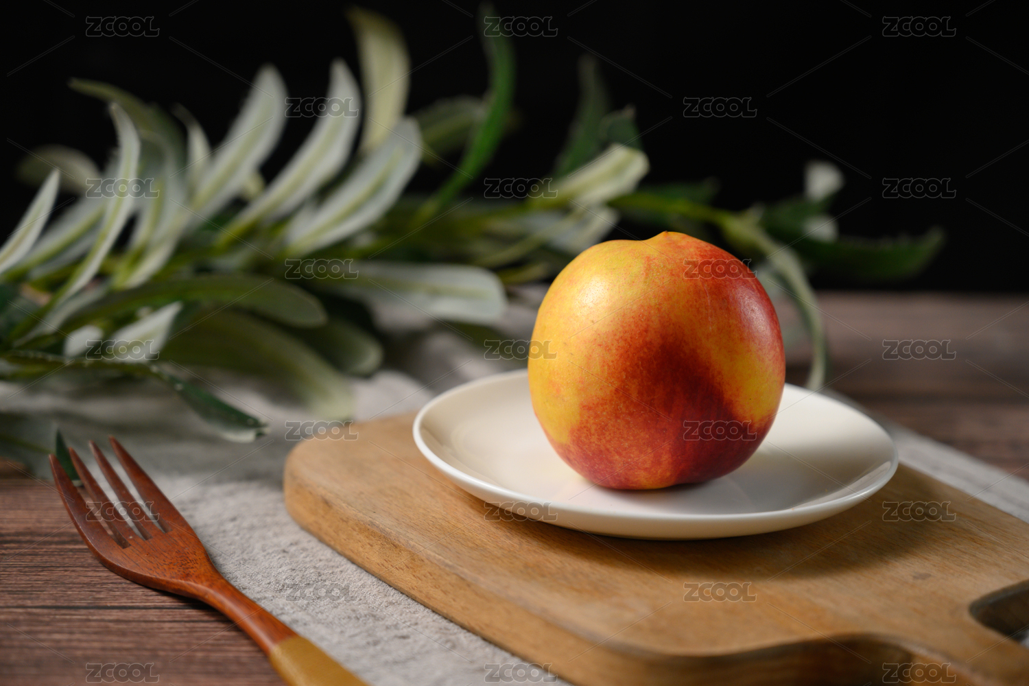 桌面上的盘子里的美味可口的新鲜黄桃