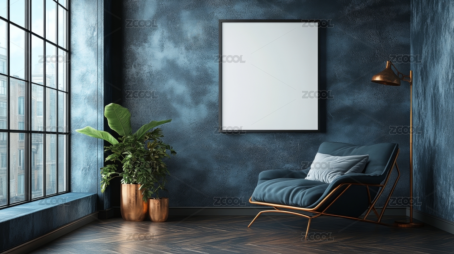 室内空画框与绿植装饰场景