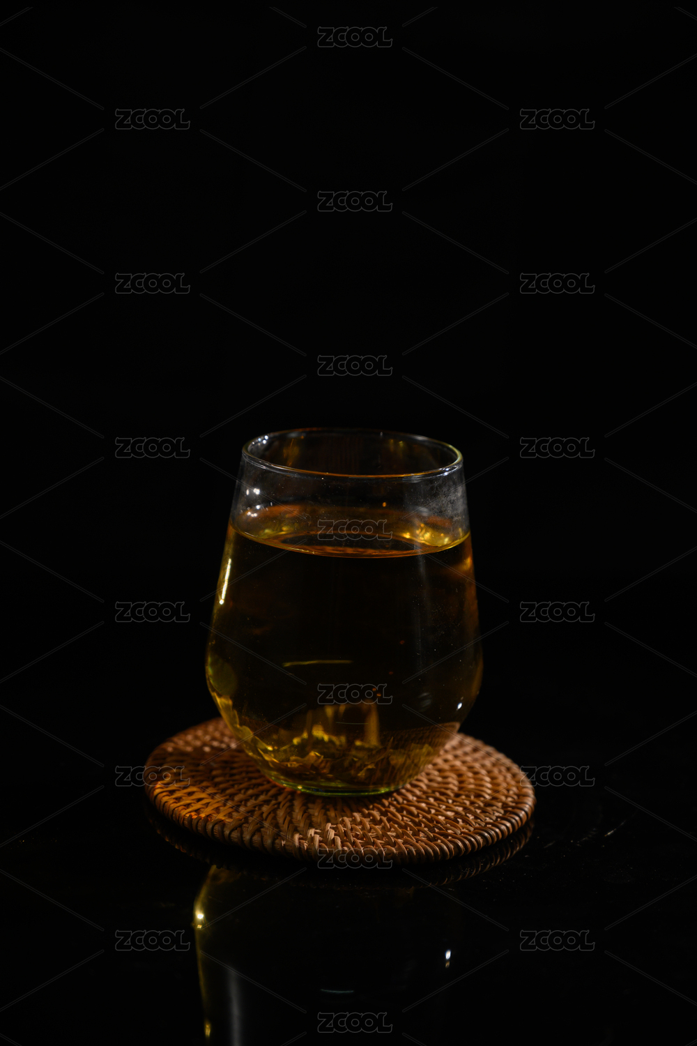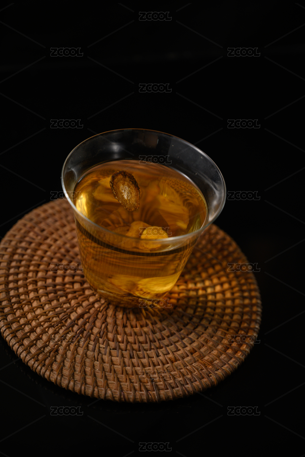 桌面上的杯子里的甘甜可口的金盏菊花茶