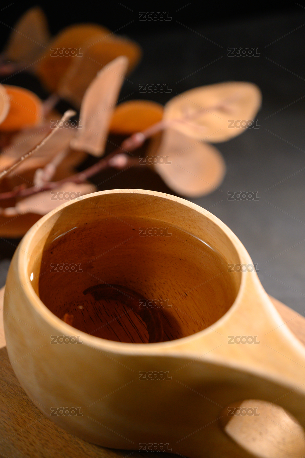 桌面上的杯子里的甘甜可口的夜交藤茶