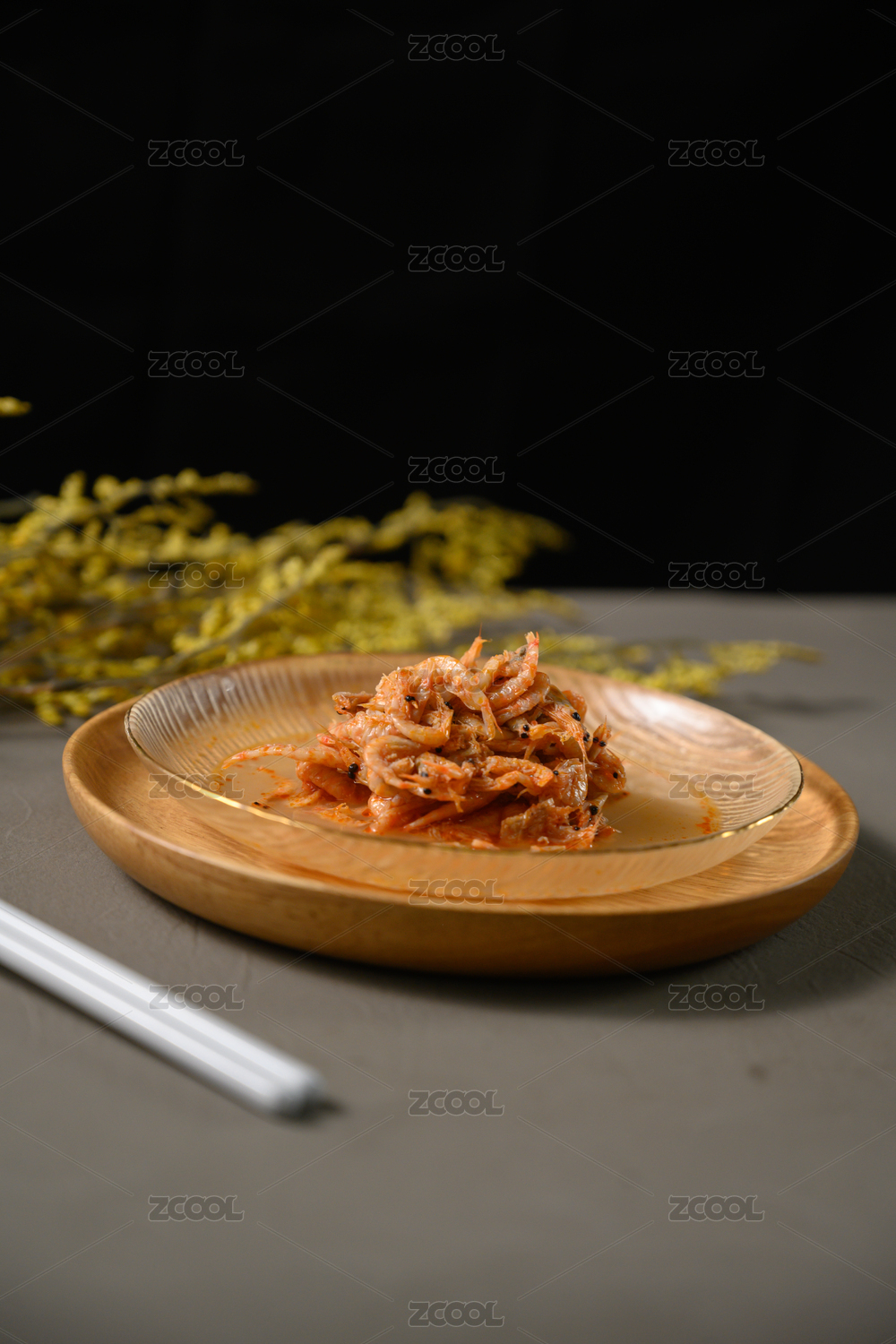 桌面上的盘子里的干槐花