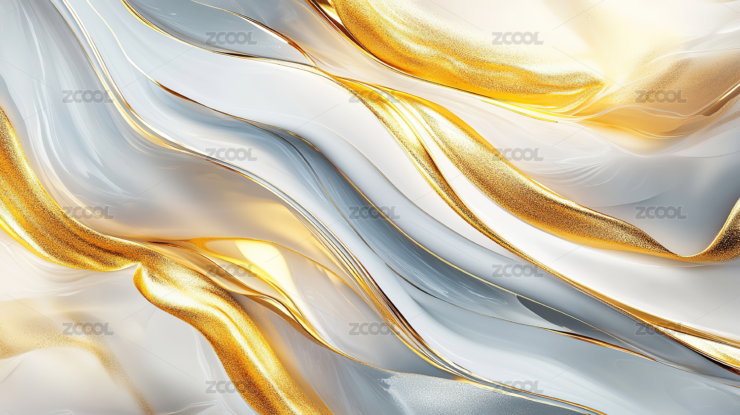 蓝色金色流体抽象画