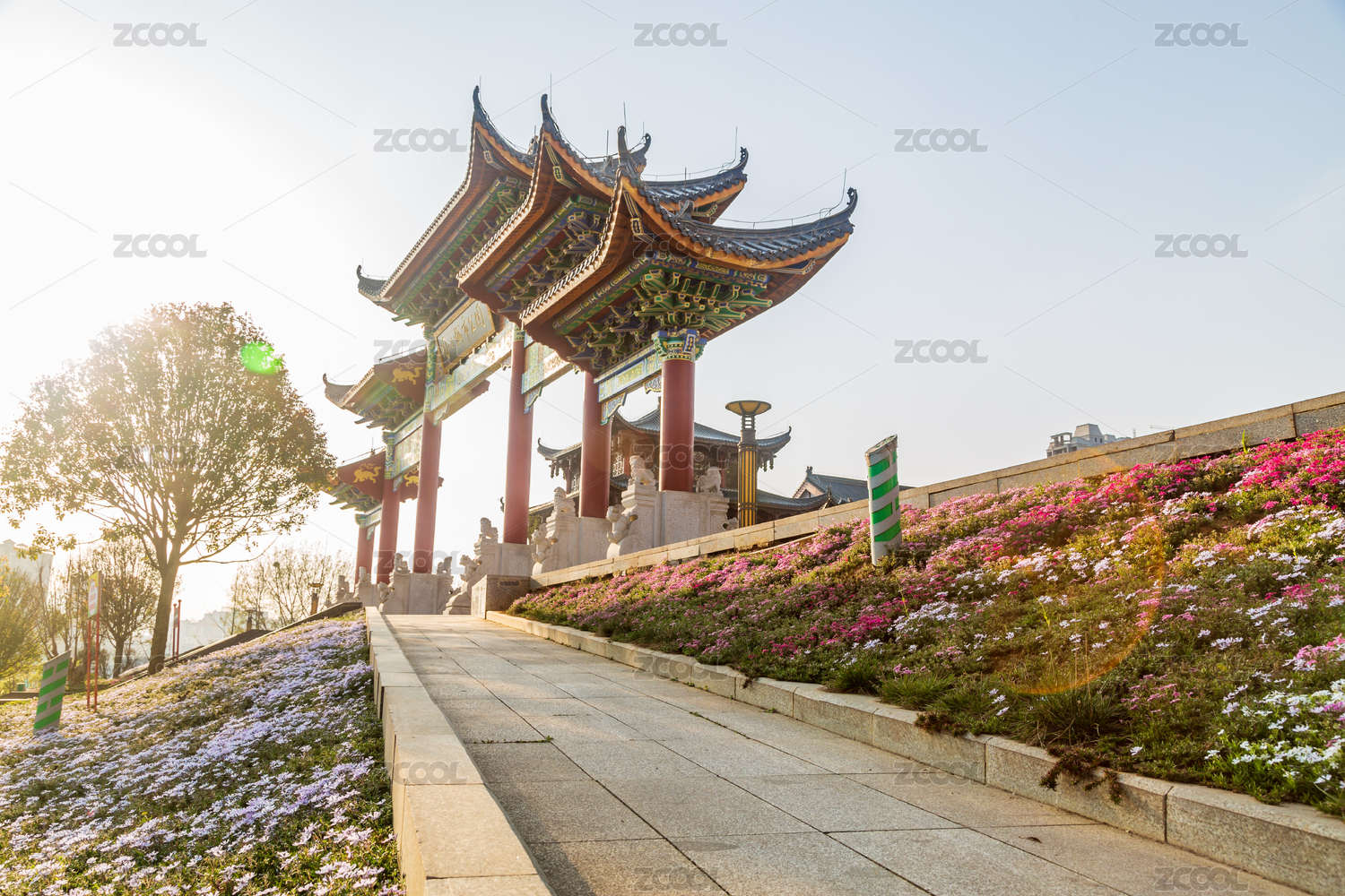 大门,门口,公园,景区,鲜花,道路,陡坡,白天,春天,城市