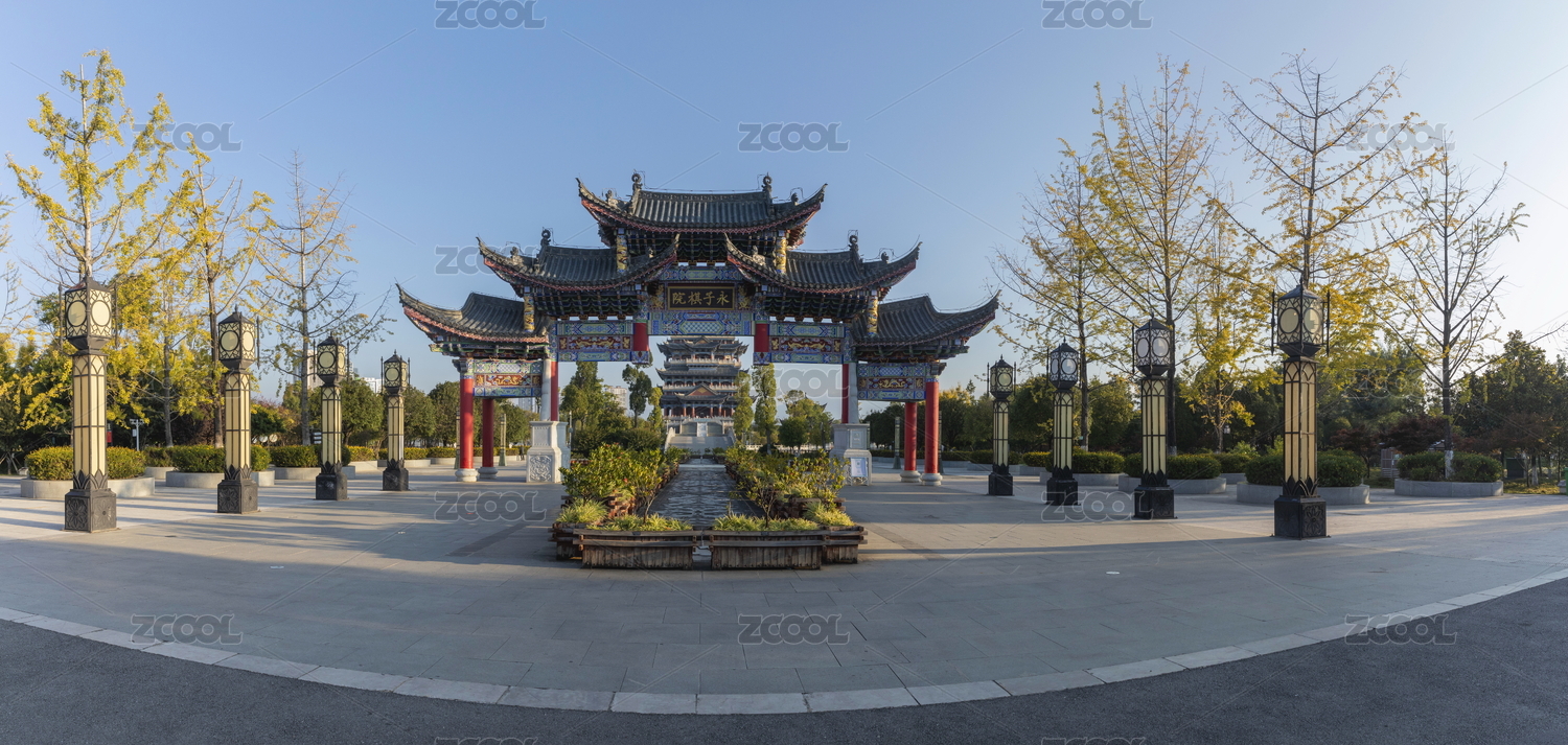 广州海珠湿地公园大门中式传统建筑牌坊牌楼