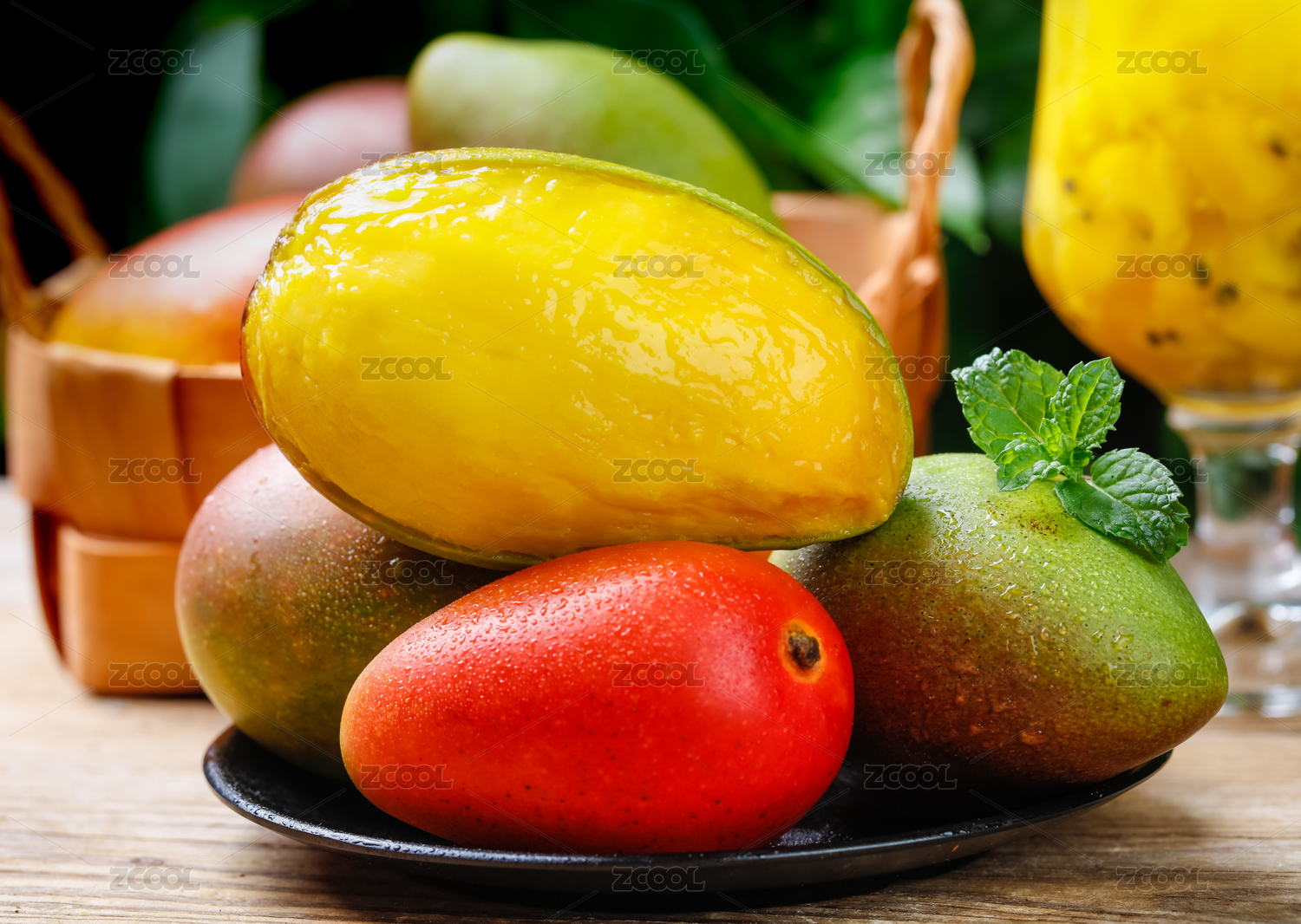 一篮新鲜海南贵妃芒和贵妃芒果肉