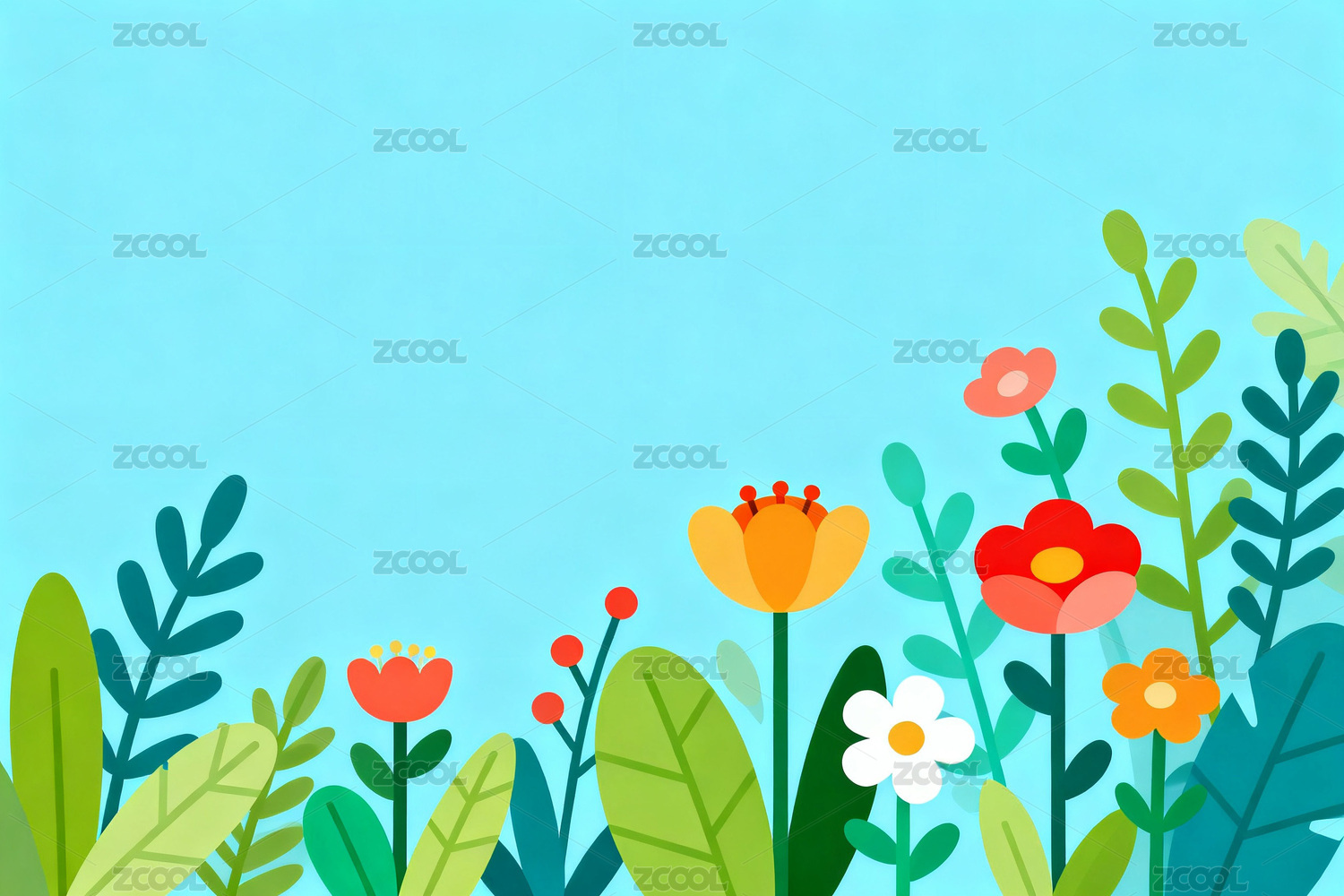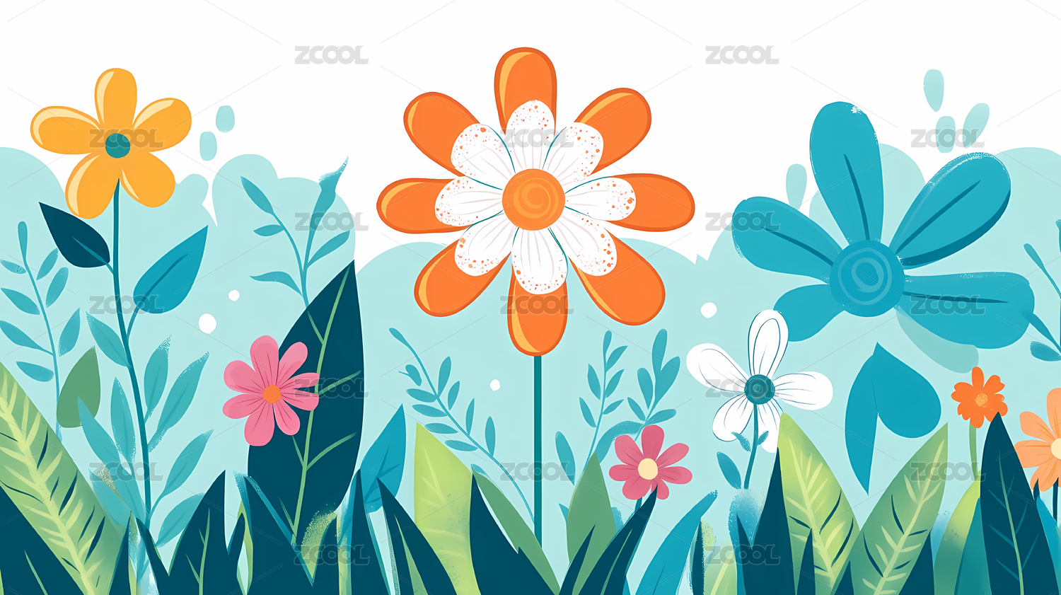 多彩花卉与绿叶装饰图案