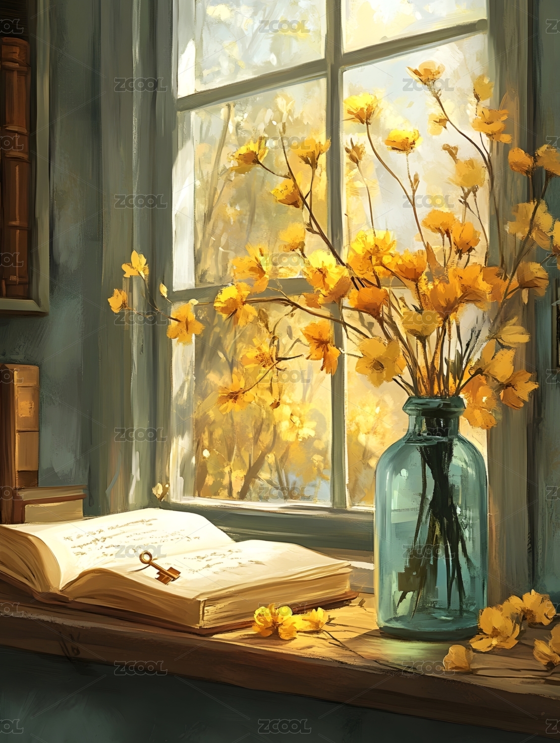 秋日窗边阅读