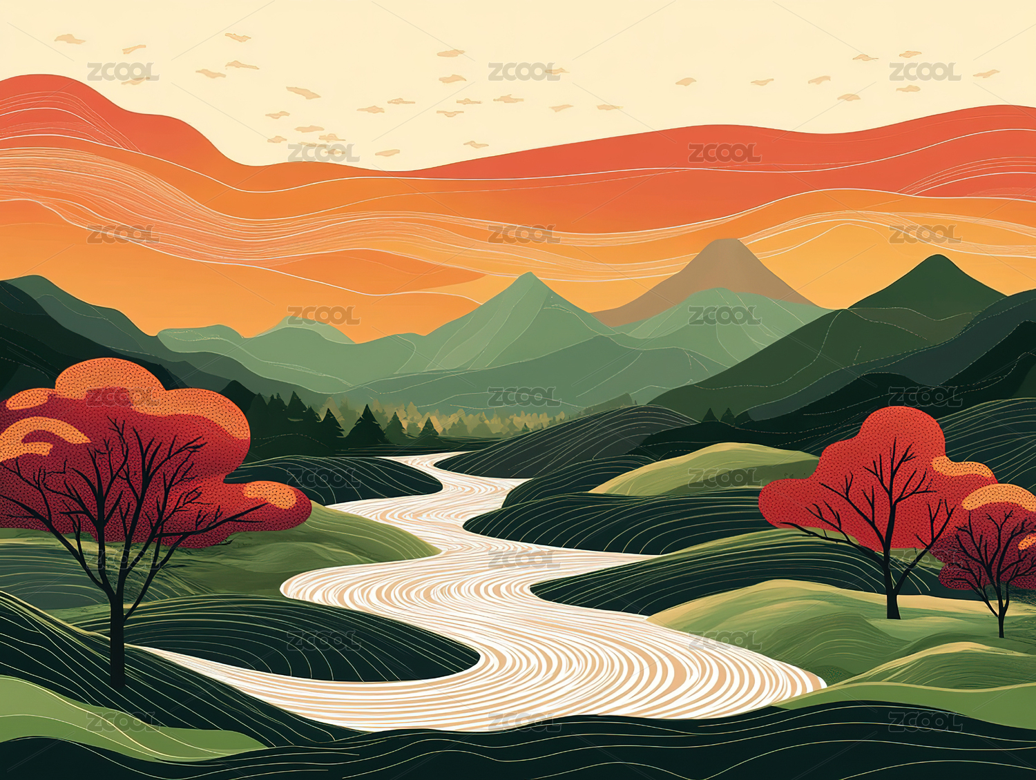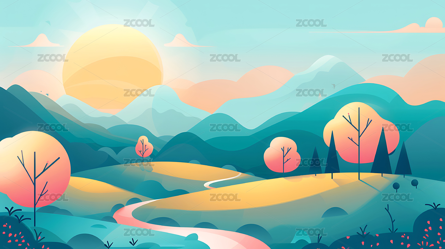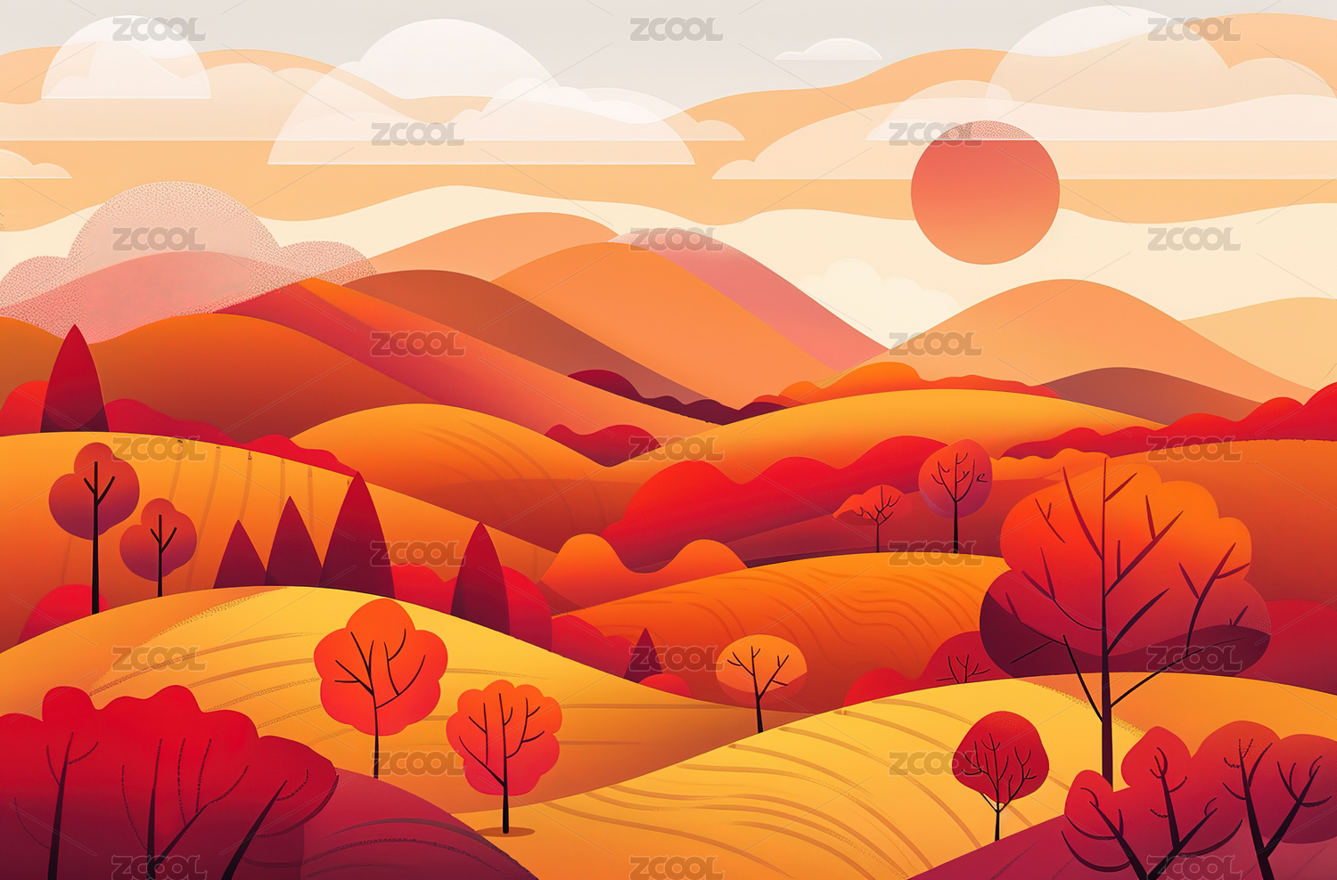 立秋节气户外旅行自然风景处暑卡通唯美插画