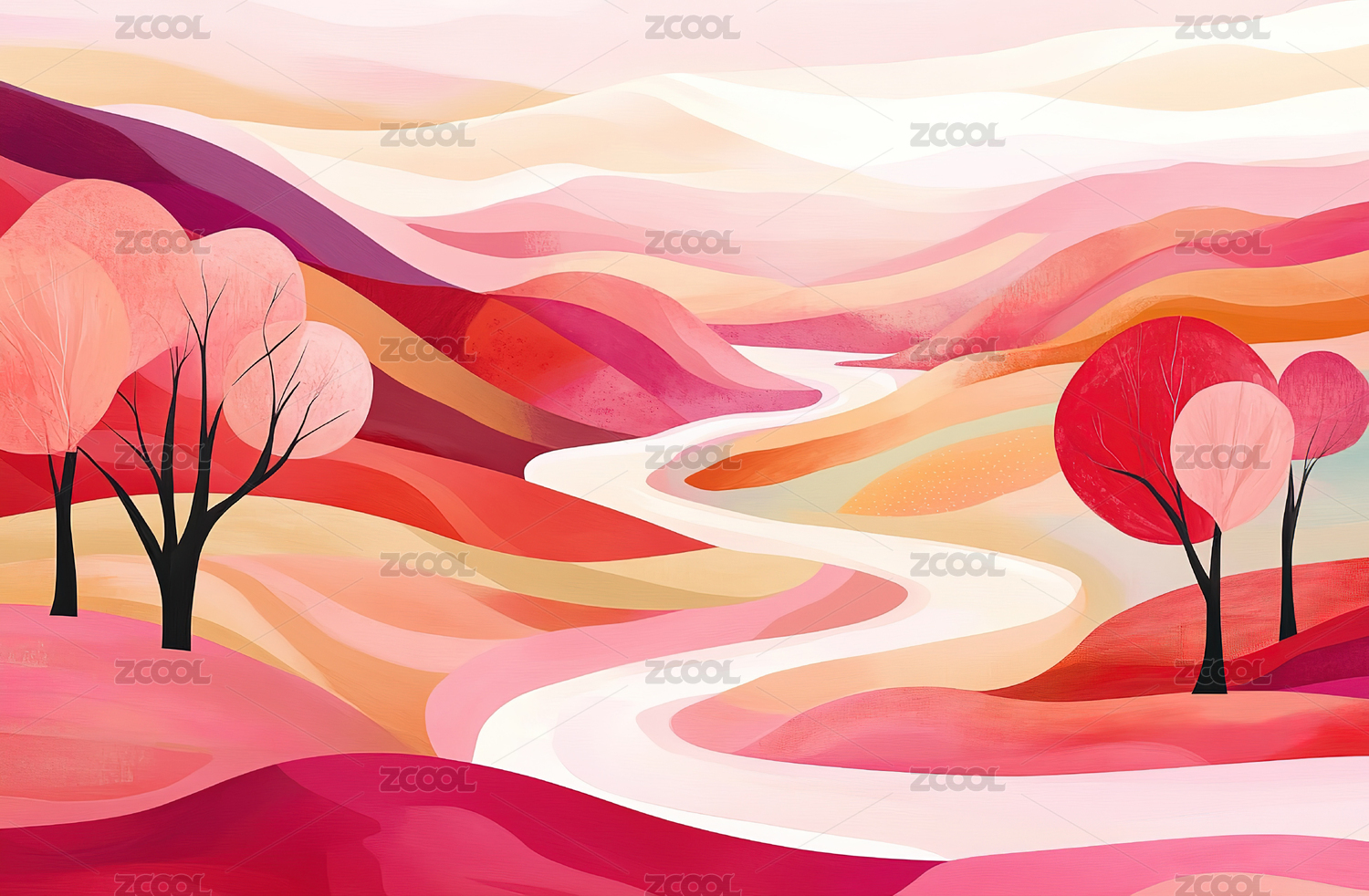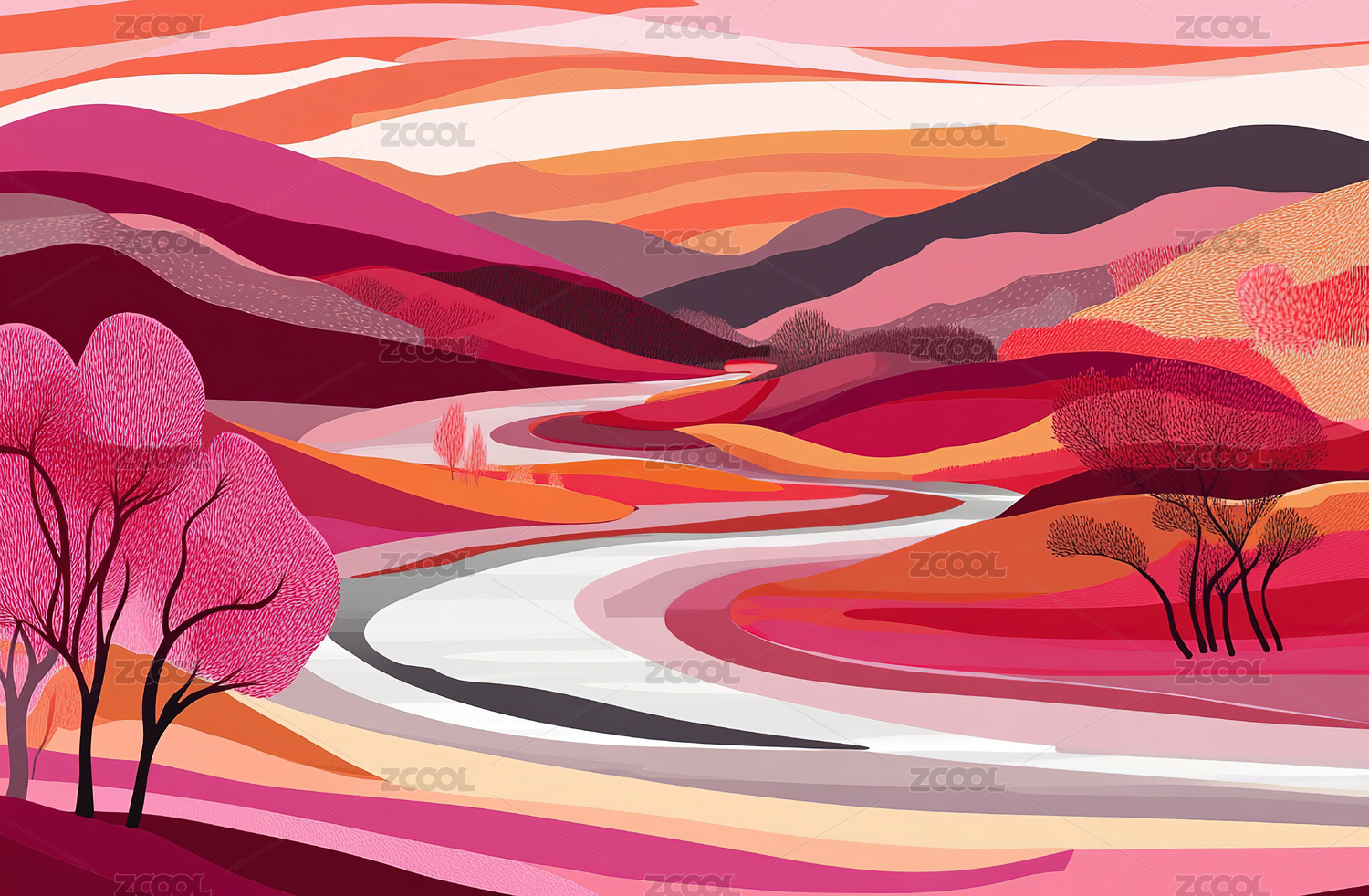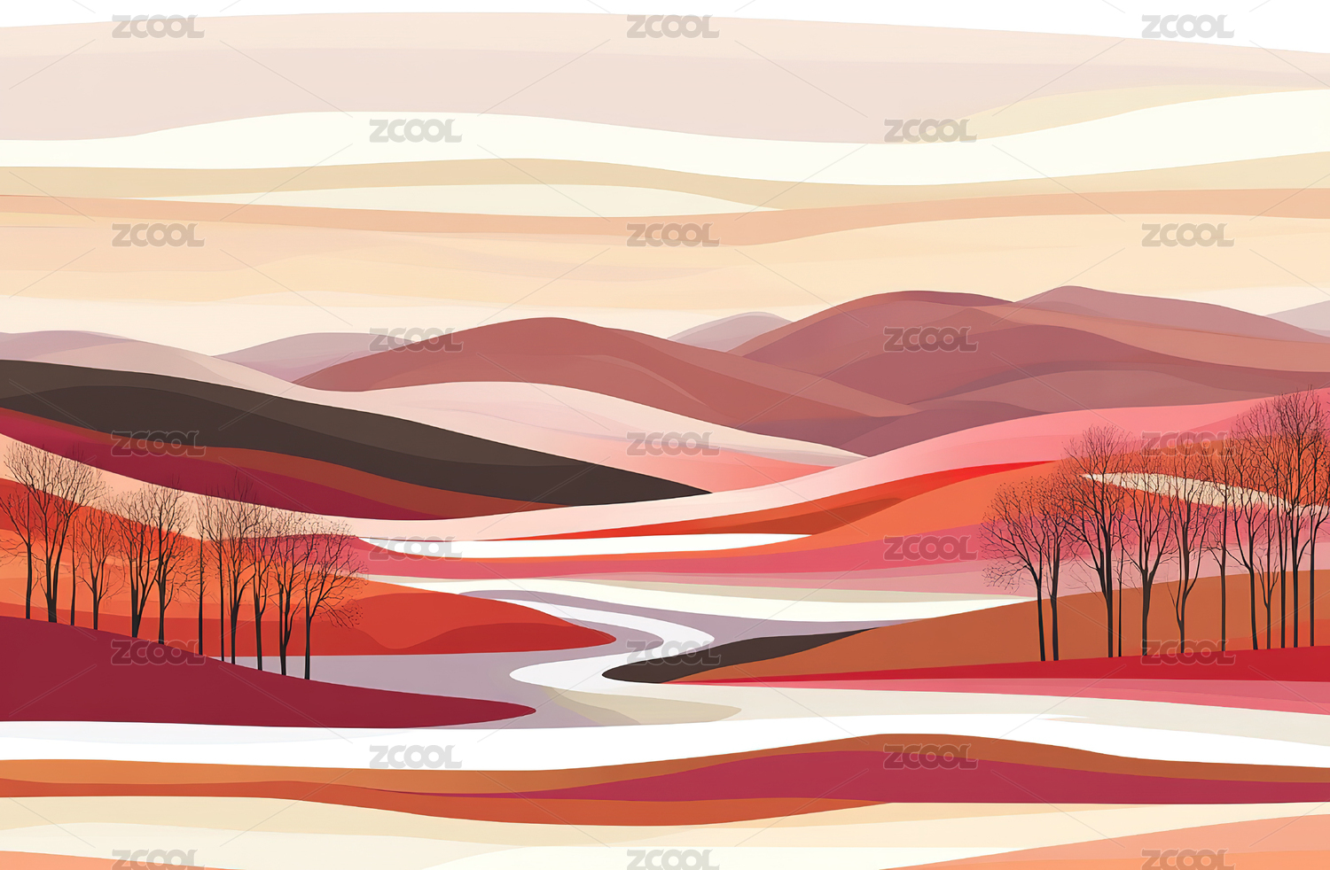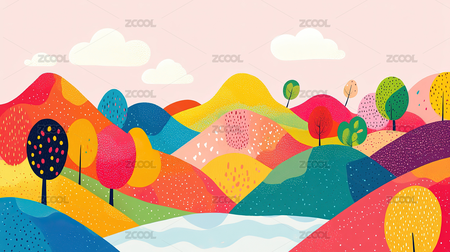 立秋节气户外旅行自然风景处暑卡通唯美插画