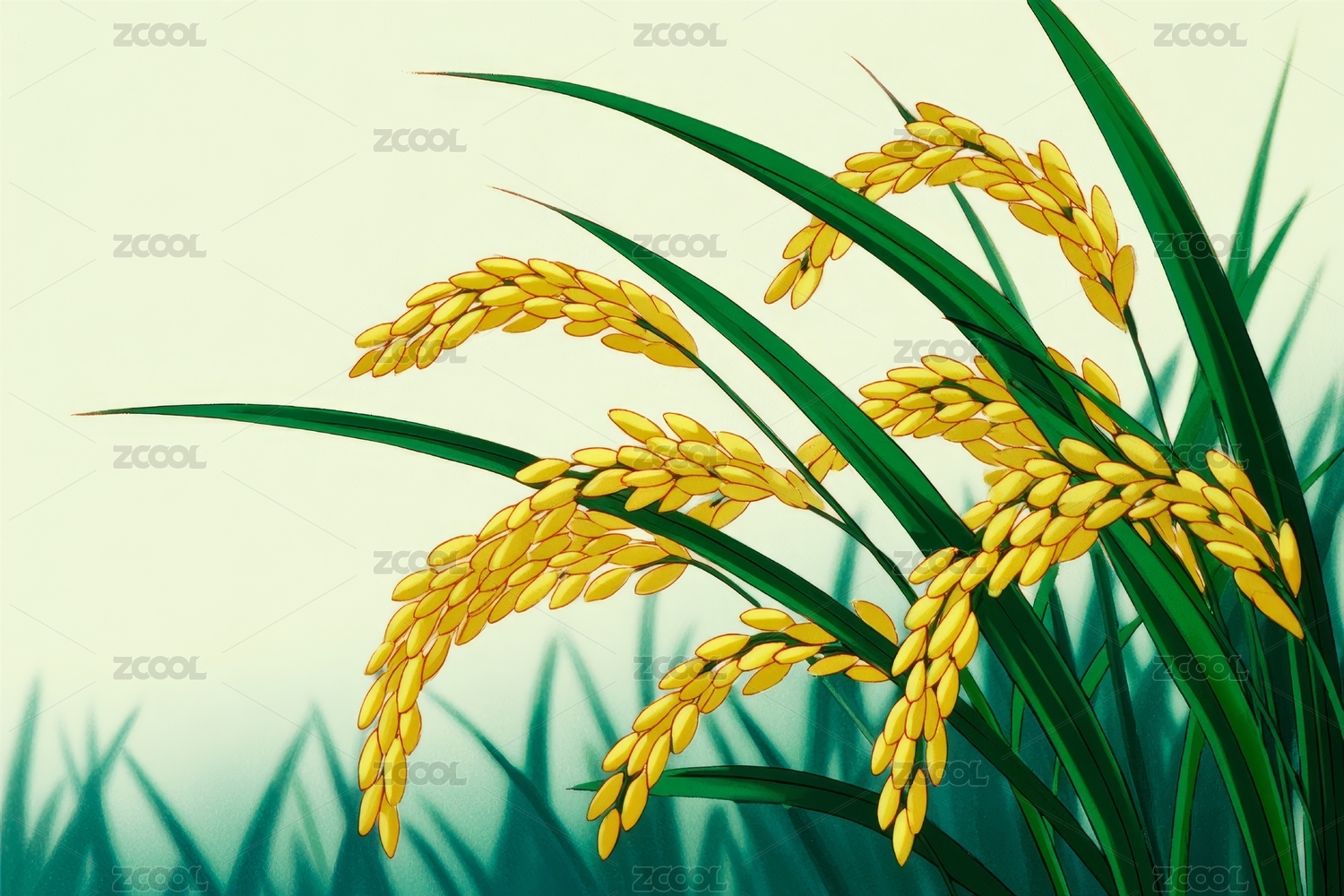 水稻稻谷写实插画