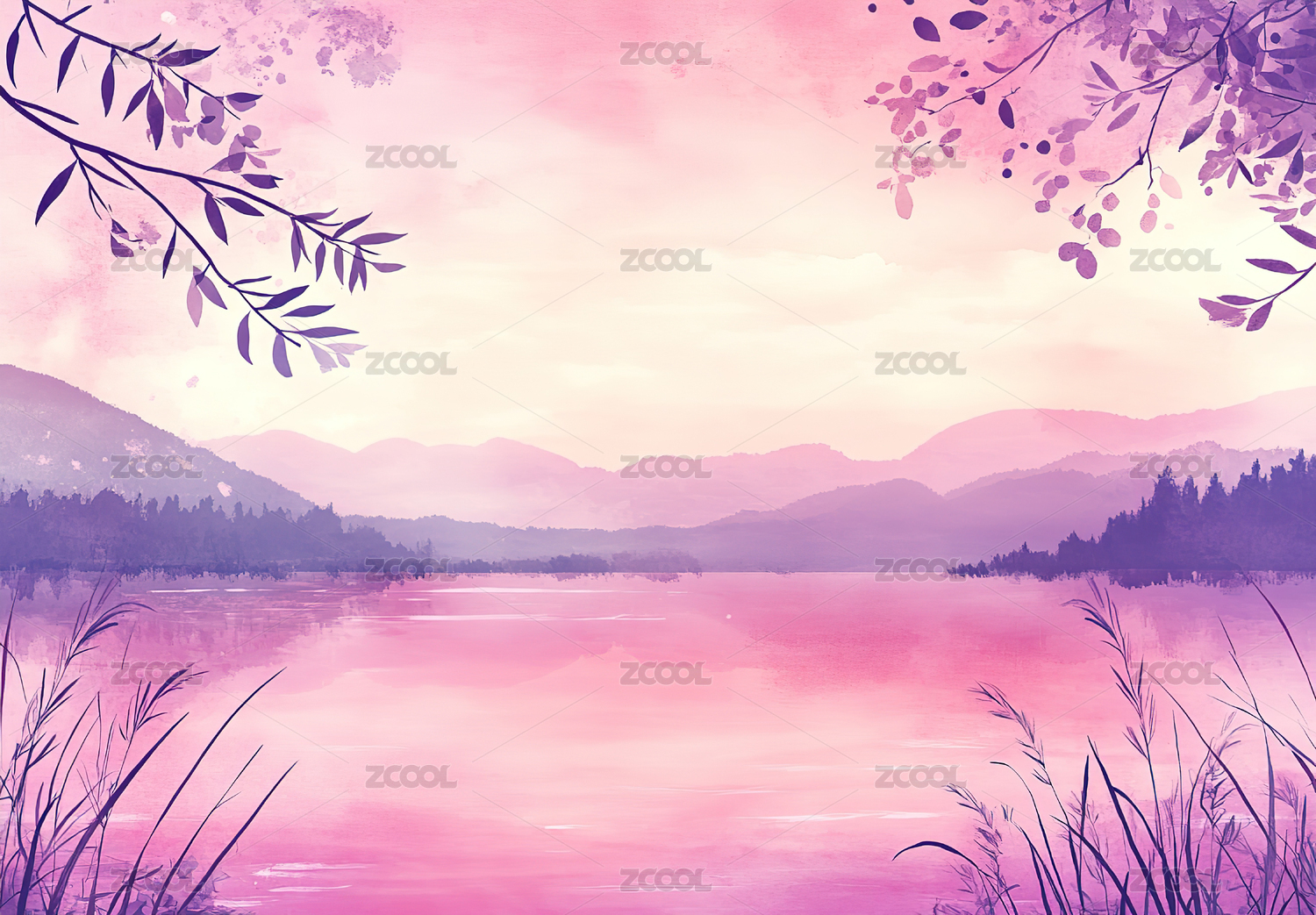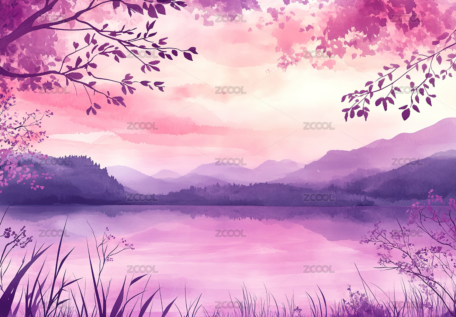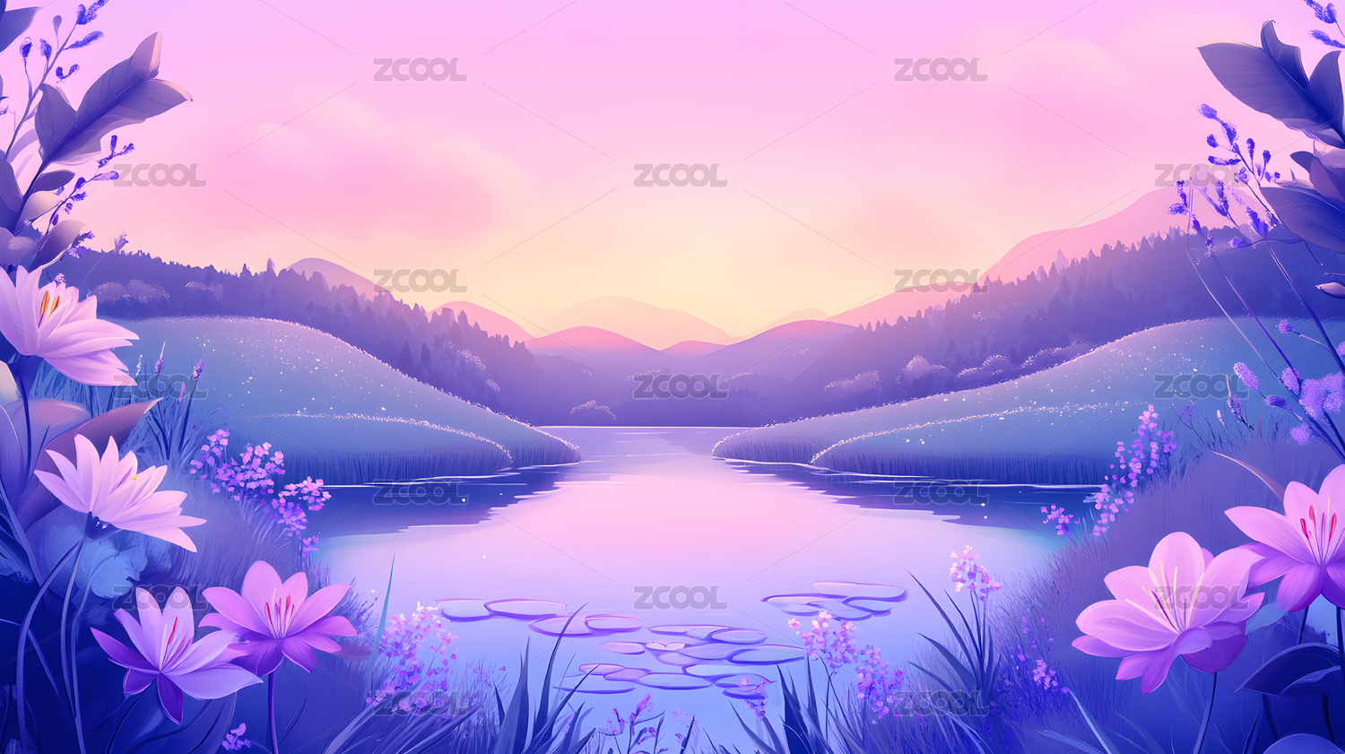 美丽的春天景观与河流山丘上的紫色薰衣草