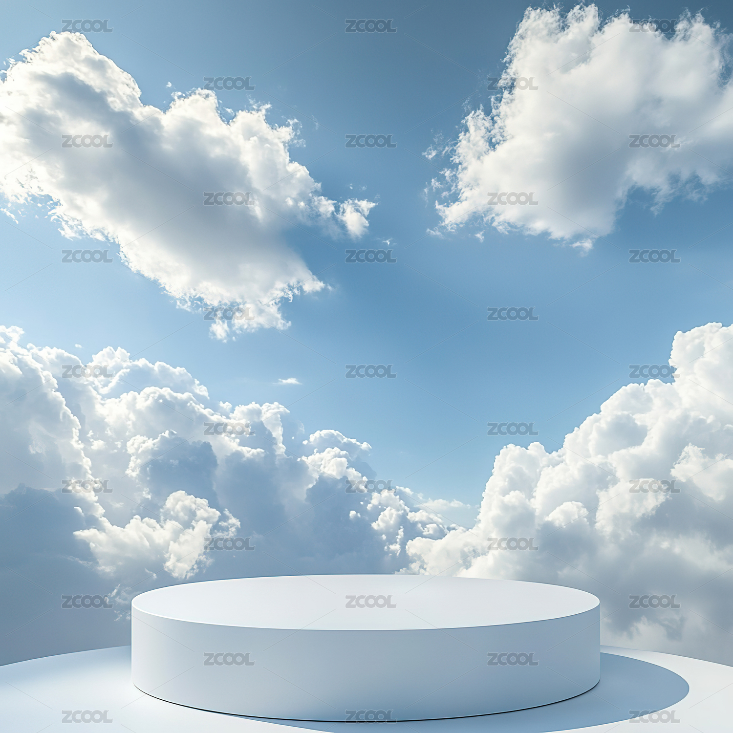 白云蓝天下的白色展示台