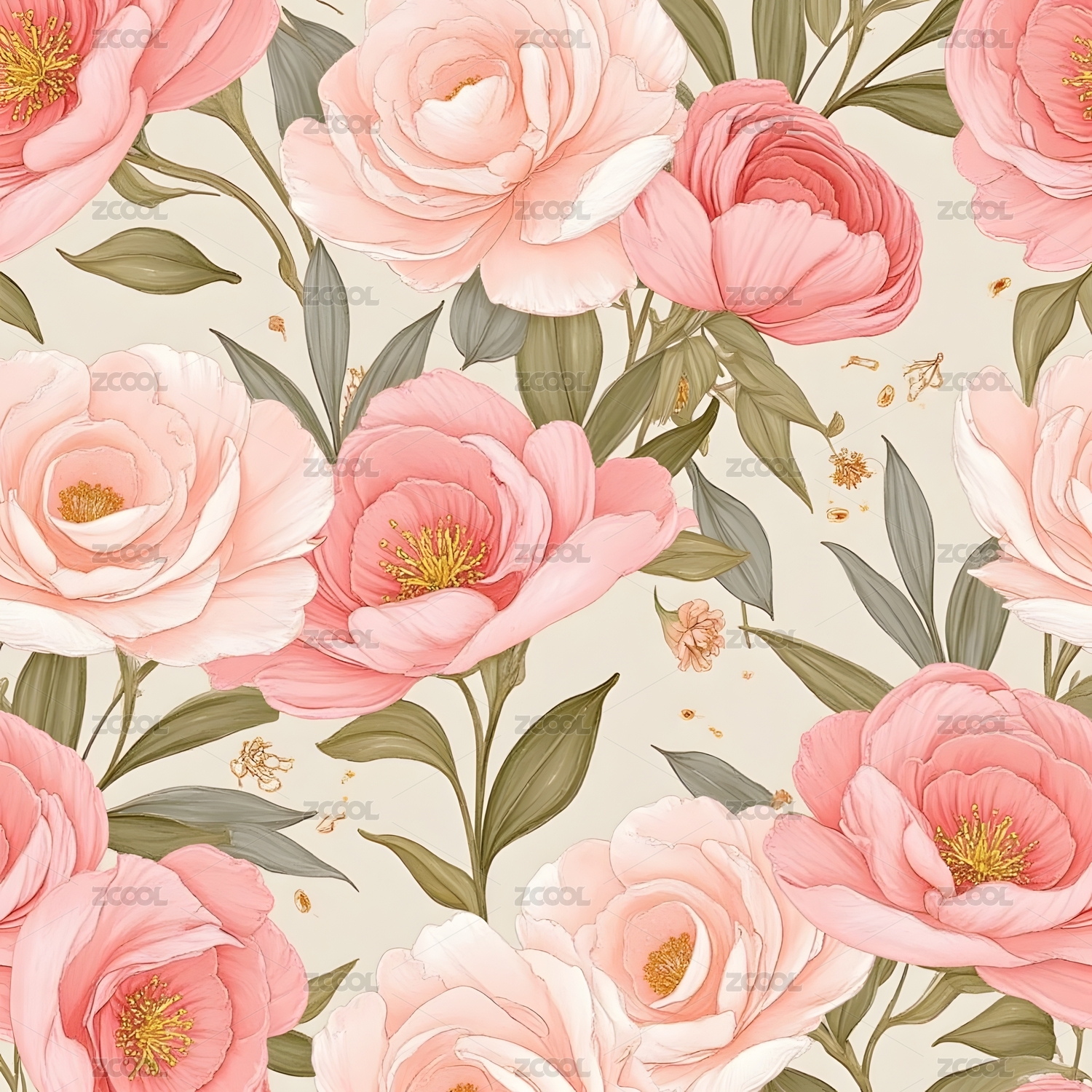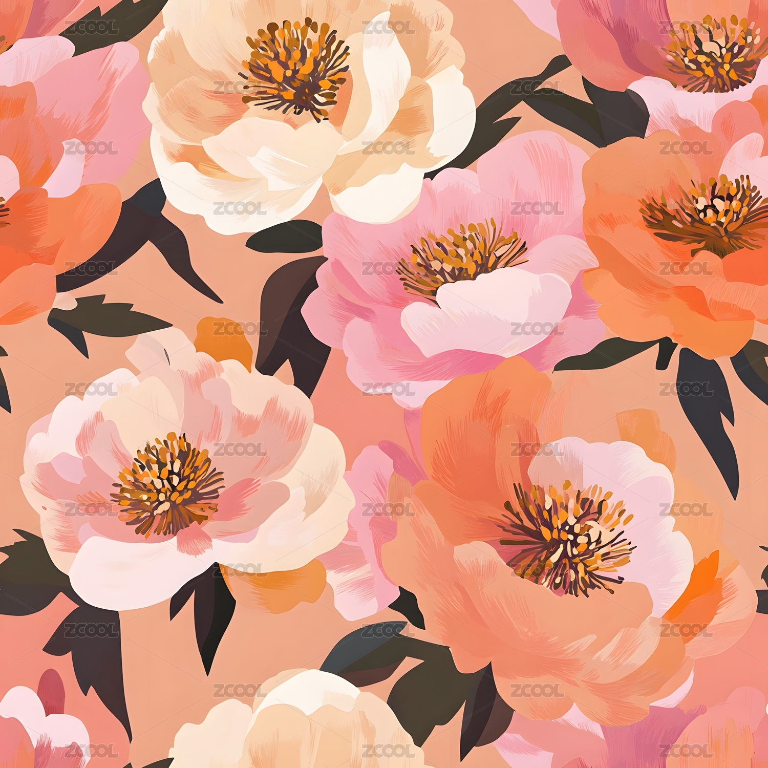 水墨牡丹盛开花卉中国风复古布料底纹图案