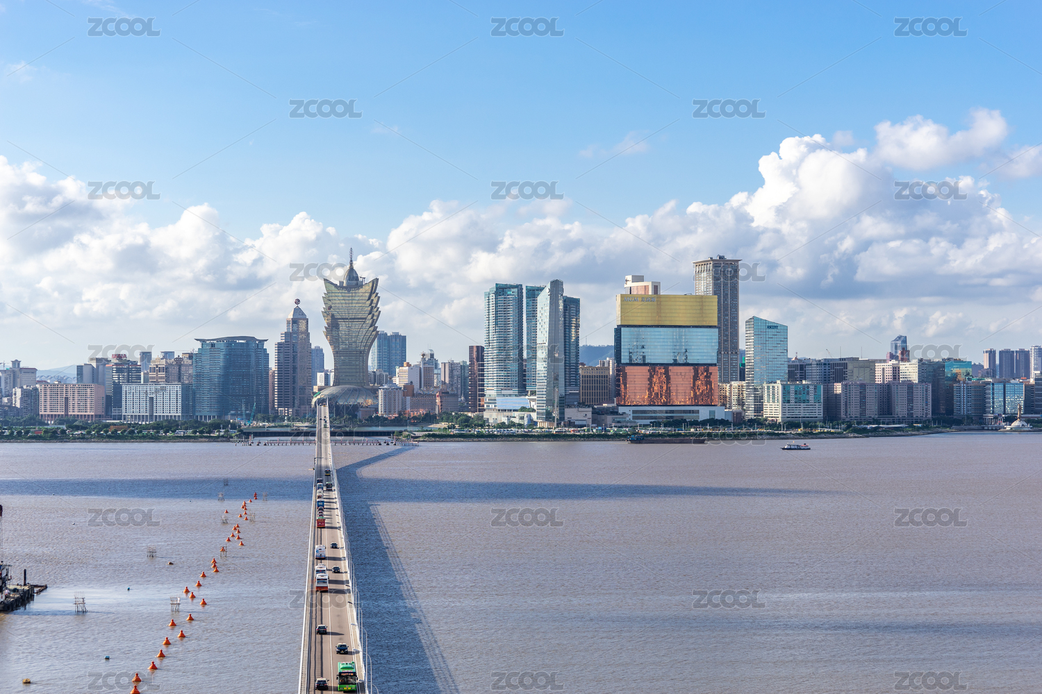 广东省珠海市白石桥与澳门建筑群天际线