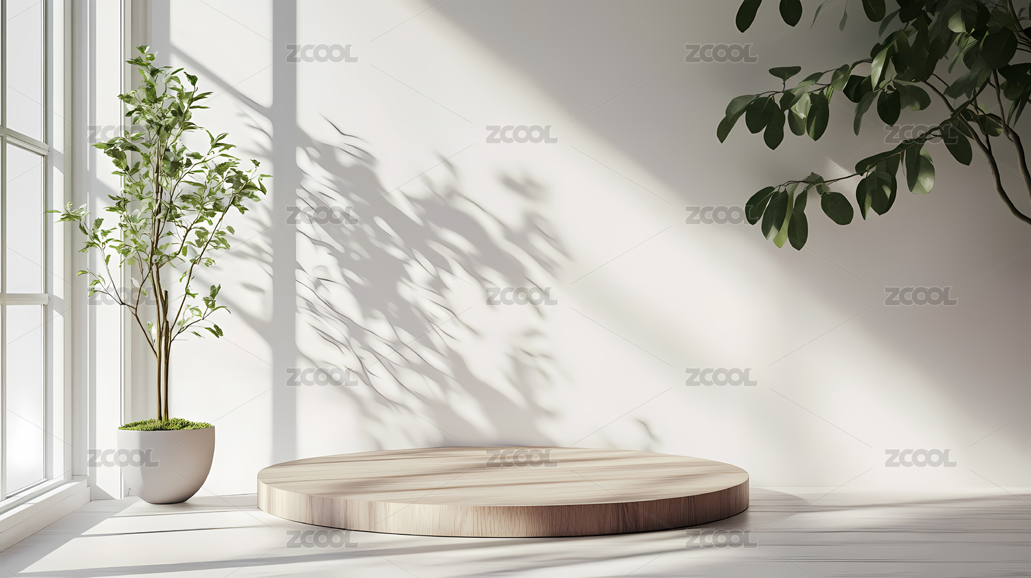 干净的室内白墙和绿植装饰简约空白渲染背景