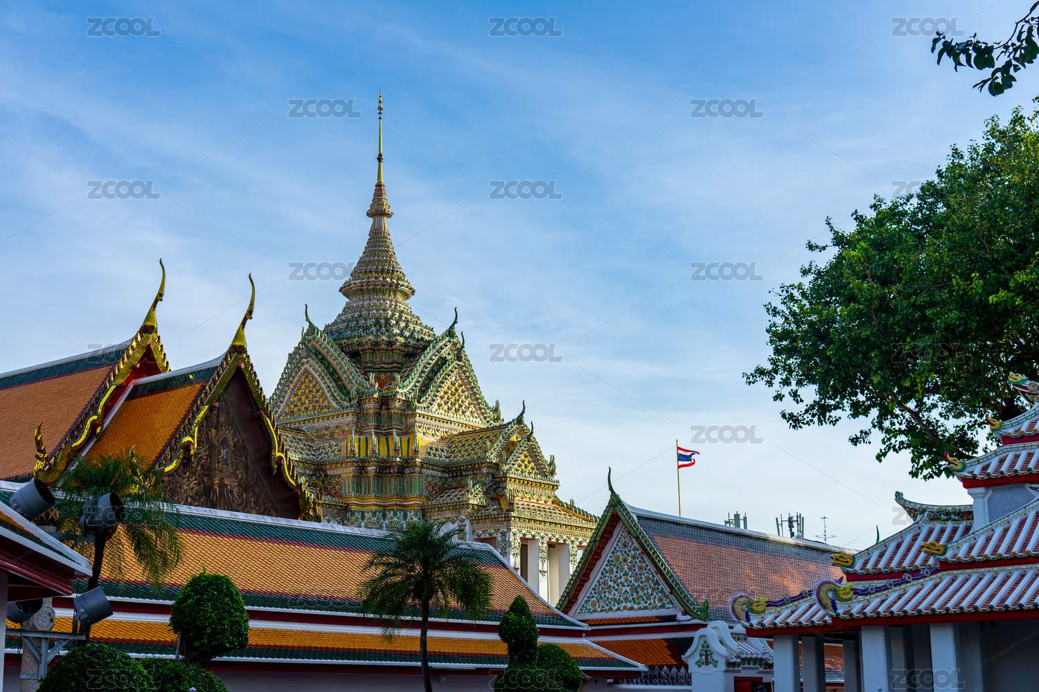 亚洲蓝天白云下泰国曼谷金碧辉煌大皇宫