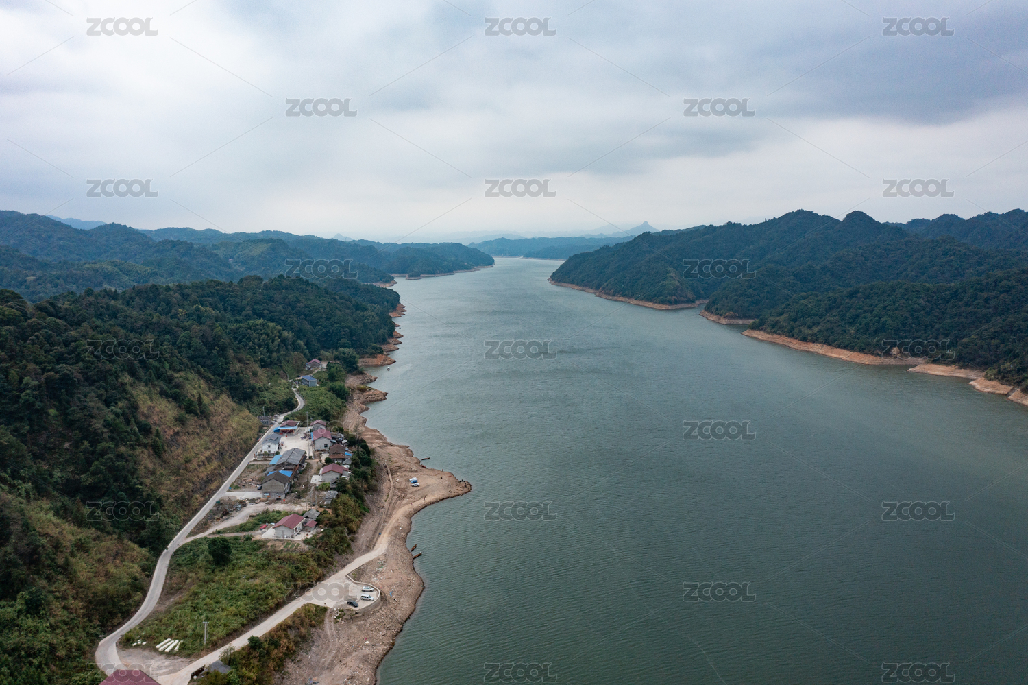 航拍,湖南,郴州,东江湖,小东江,岸,湖,河流,建筑,村庄