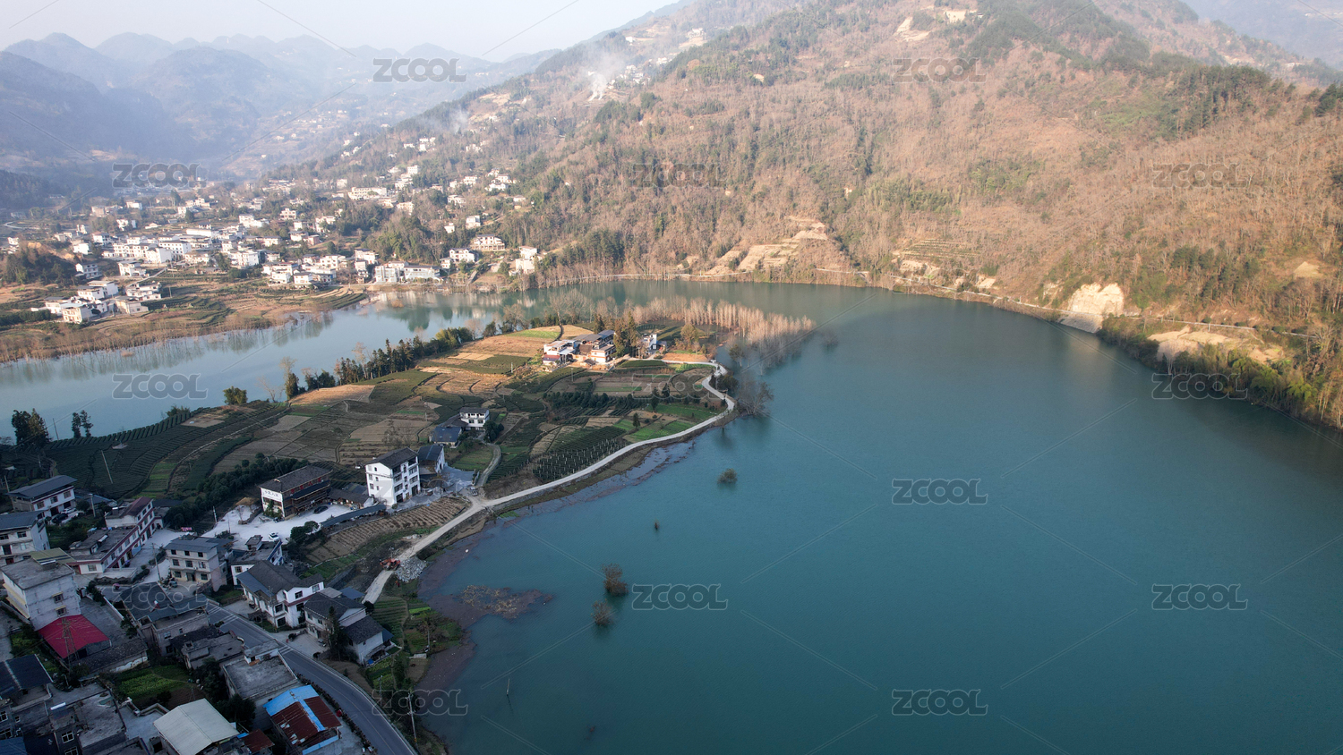 航拍,湖南,郴州,东江湖,小东江,岸,湖,河流,建筑,村庄