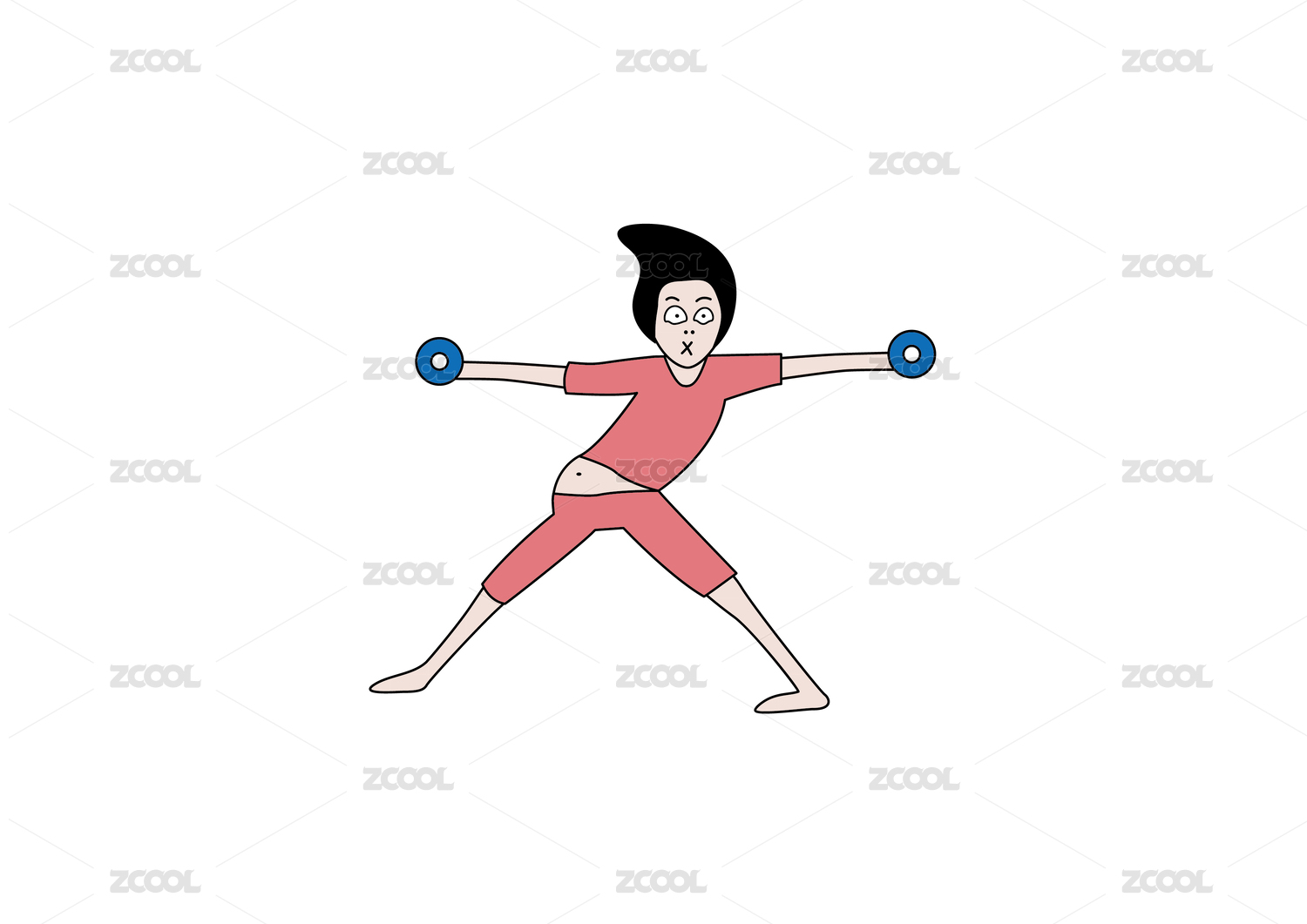 插图 卡通 日韩 可爱 搞怪 减肥 运动 简约 插画 矢量 女性 跑步 健身 哑铃 粉色 线条 平面 一个 独自