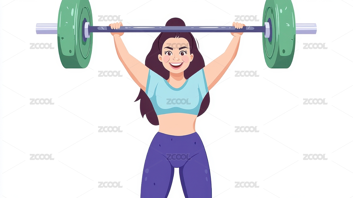 卡通田径杠铃比赛美女插画