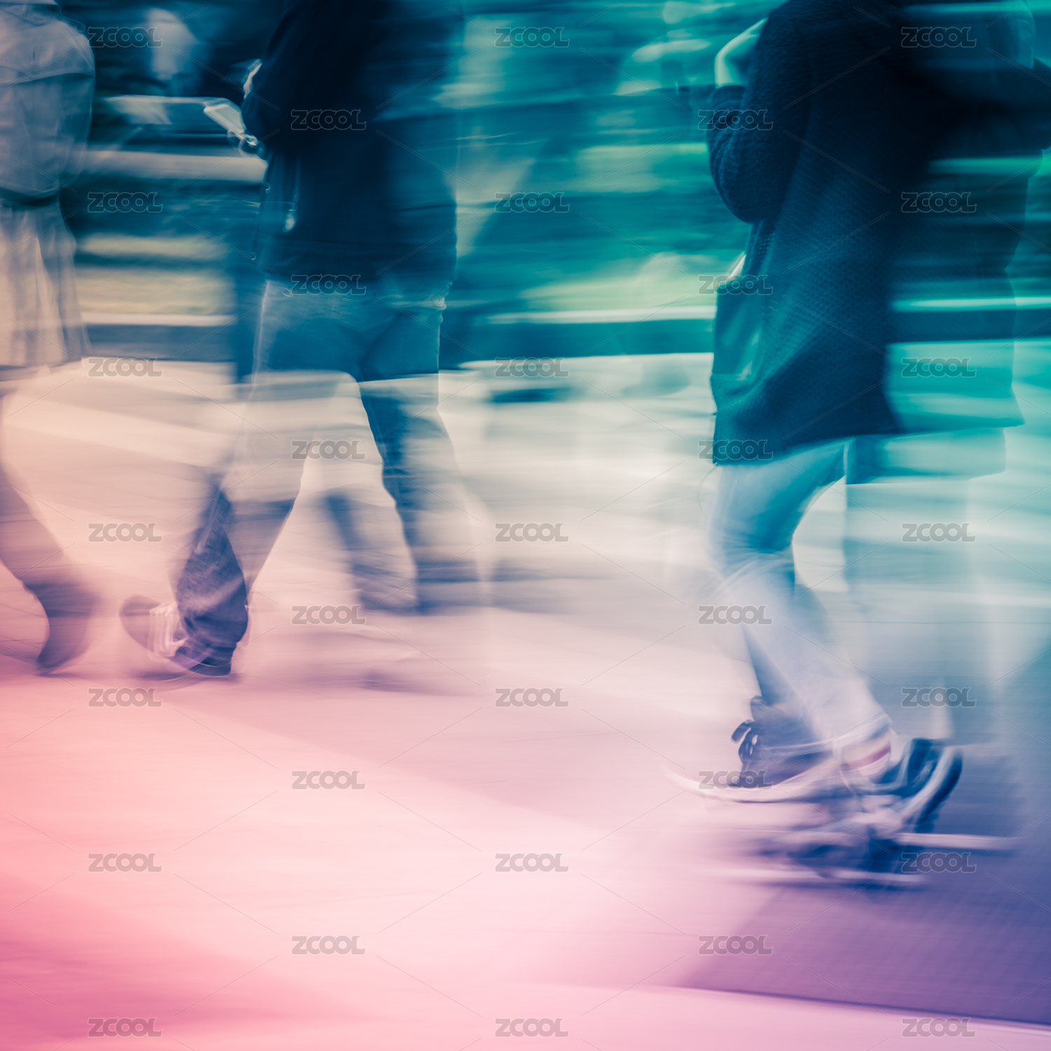 走的商务人士,抽象模糊。